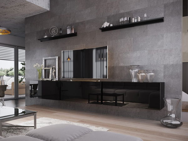 - Nábytek do obývacího pokoje Otharix VI (černý + černý lesk) (s nožičkami)