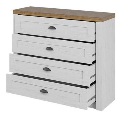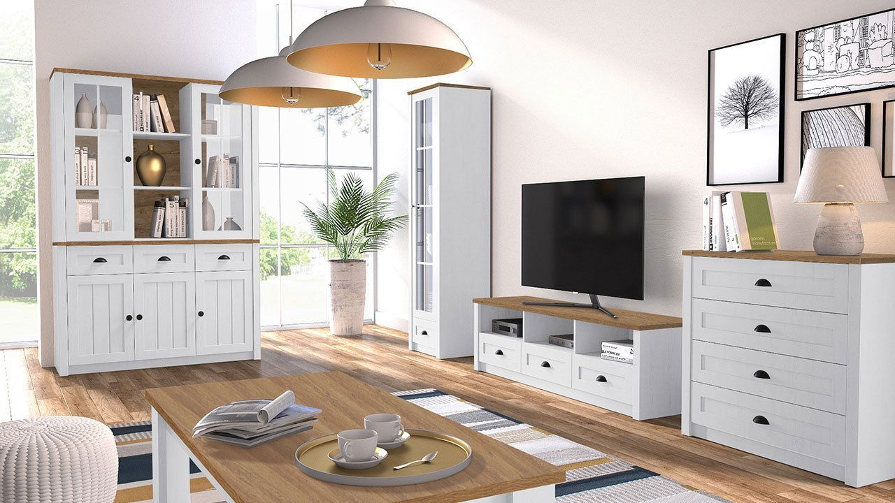 ZobrazitNábytek do obývacího pokoje je ideální volbou pro ty, kteří hledají pohodlí a styl. Nábytek do obývacího pokoje Patty III inspirovaný regionem Provence zaujme svým stylovým designem. Kombinace vzorů bělené borovice s jemným nádechem dubových odstínů vnáší do interiéru atmosféru klidu a harmonie vhodnou k relaxaci. Světlé tóny soupravy jsou přerušeny černými rukojeťmi z kovu. Mezi nábytkem v této linii vyniká především stylová vitrína s nástavcem. Je to velice objemný kus nábytku, který se zároveň krásně prezentuje v obytném prostoru. Druhá vitrína ze série nabízí prosklený prostor pro vystavení doplňků a dekorací. Jako sada vitrín je k dispozici také TV stolek a komoda. Kuličkové výsuvy použité v zásuvkách zvyšují funkčnost skříně a usnadňují každodenní používání jejího obsahu. Nábytek do obývacího pokoje vděčí za svoji odolnost a pevnost vysoce kvalitním komponentům použitým při jeho výrobě. Základem je laminovaná deska, která je odolná vůči drobnému poškození a poškrábání. Rozměry: Komoda Patty K3SP PA04: šířka: 130 cm, výška: 87 cm, hloubka: 43 cm, Vitrína Patty W1S PA18: šířka: 50 cm, výška: 198 cm, hloubka: 43 cm, Vitrína - nástavec Patty W2D PA19: hloubka: 35 cm, TV stolek Patty: šířka: 158 cm, výška: 49 cm, hloubka: 43 cm, Konferenční stolek Patty ST2: šířka: 120 cm, výška: 51 cm, hloubka: 60 cm, Komoda Patty K4: šířka: 88 cm, výška: silná laminovaná dřevotříska, horní část: 36 mm laminovaná dřevotříska, MDF lišta, 2,5 mm lakovaná deska HDF, lemování: ABS dýha, kliky: dveře - klika, zásuvky - skořepina, nohy: skluzavka s hřebíkem, rovné závěsy bez tich ložisky, plné vysunutí, čiré sklo, LED osvětlení jako doplňková možnost za příplatek Záruka: 24 měsíců