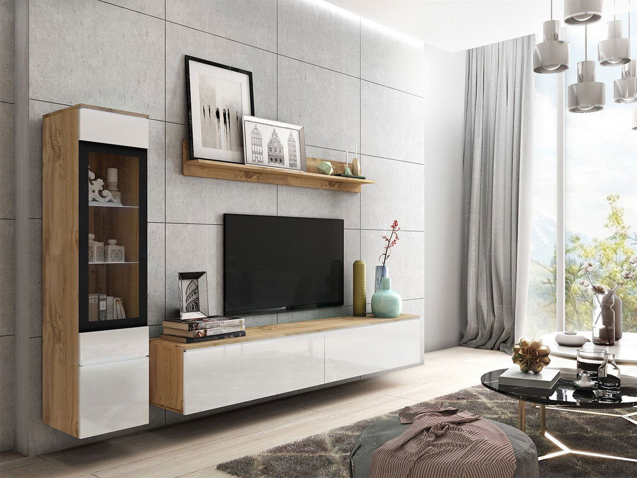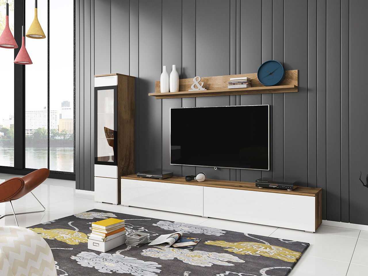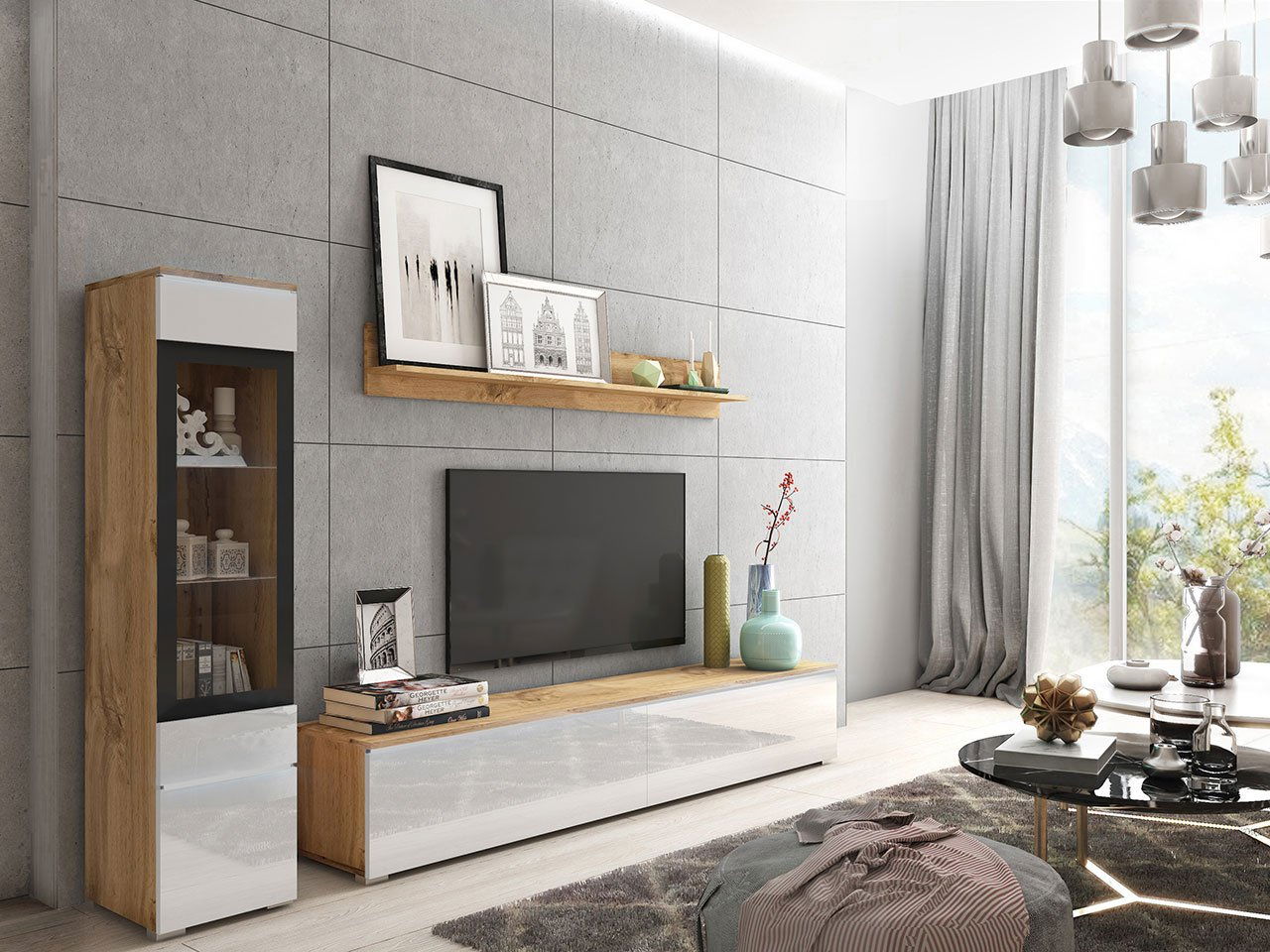 Nábytek do obývacího pokoje Selwyn I (wotan + bílý lesk) (bez osvětlení)