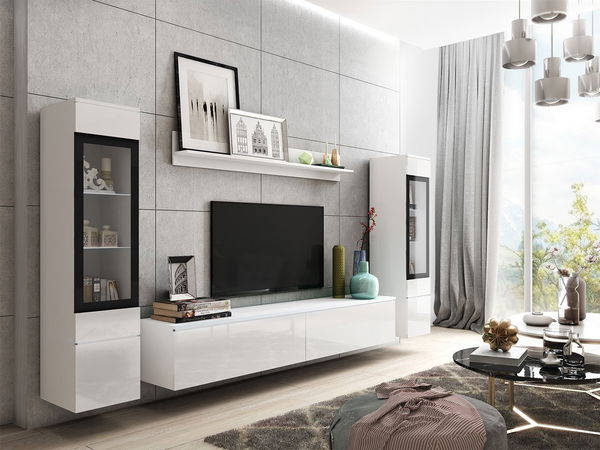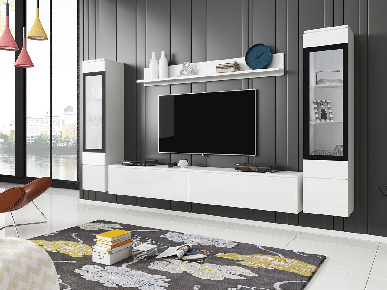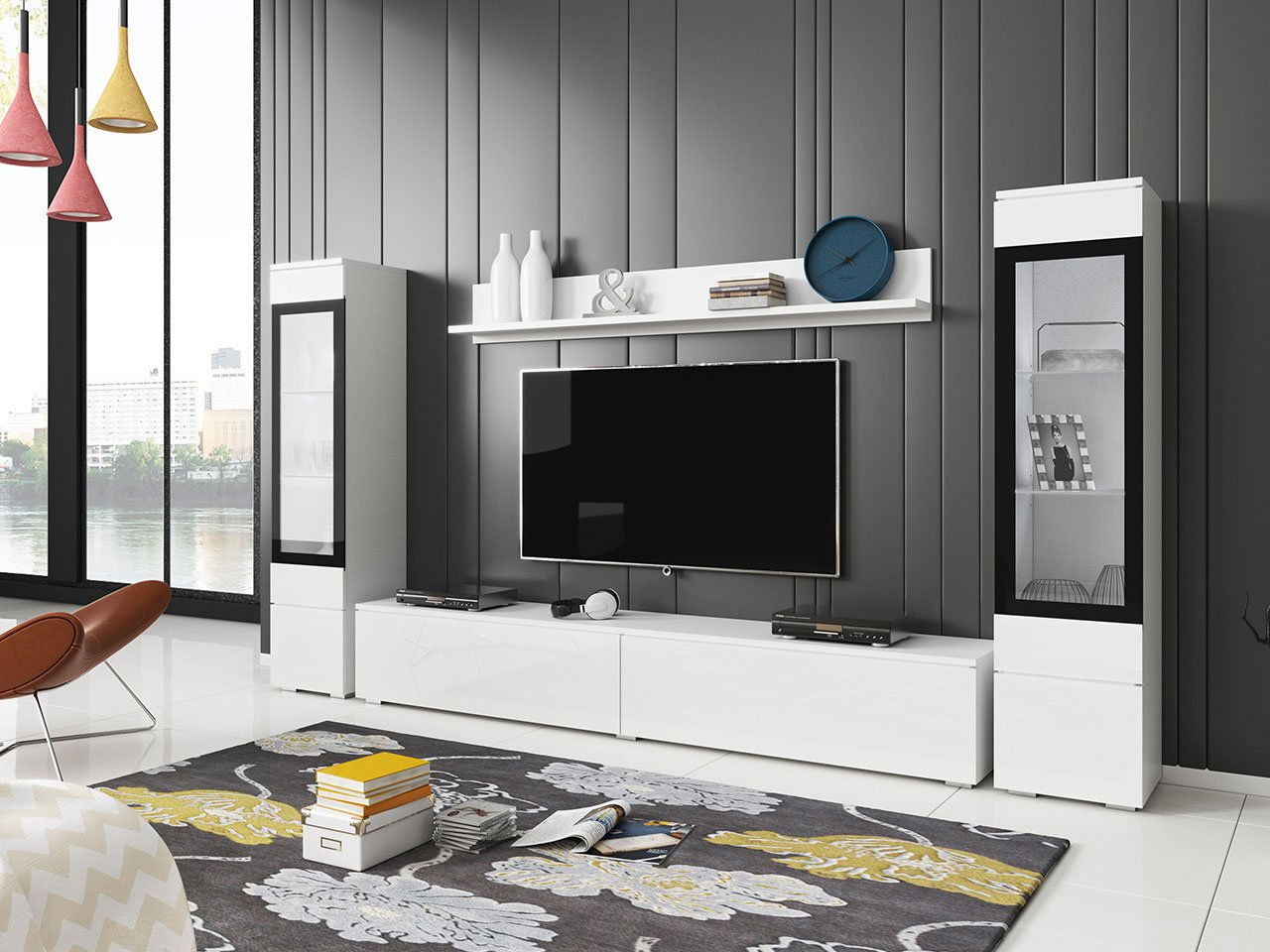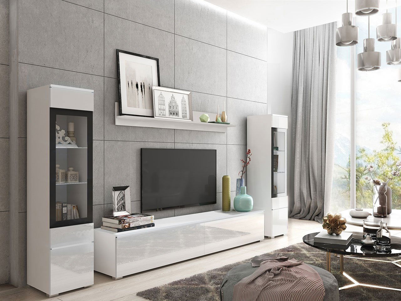 Nábytek do obývacího pokoje Selwyn II (bílý + bílý lesk) (bez osvětlení)