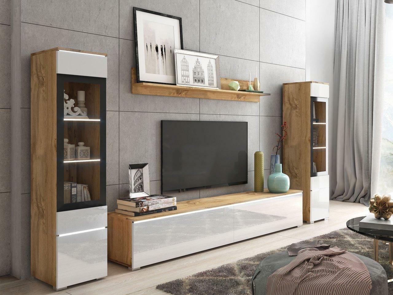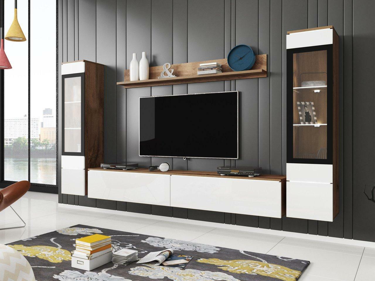 Nábytek do obývacího pokoje Selwyn II (wotan + bílý lesk) (osvětlení led bílé)