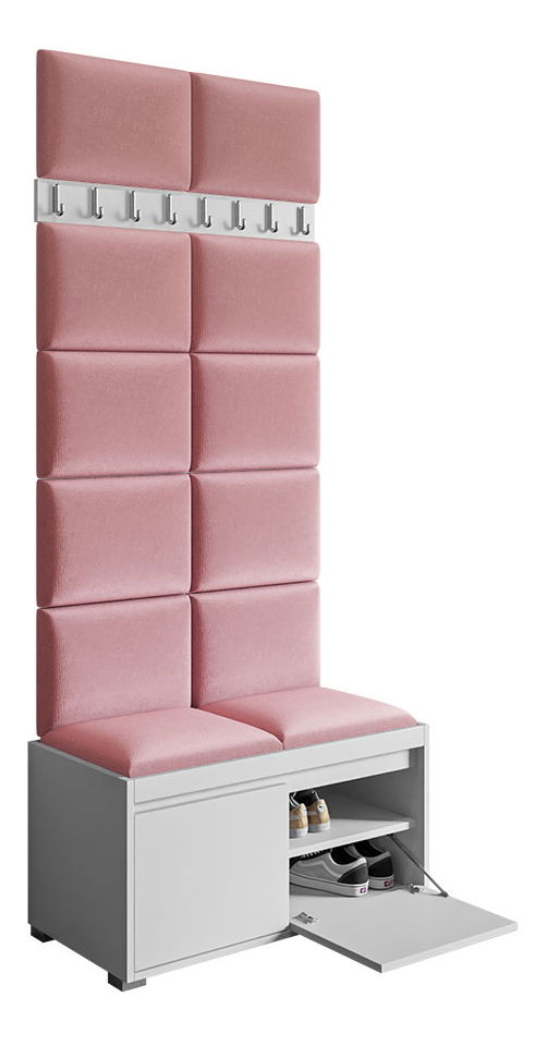 ZobrazitČalouněné panely jsou největším trendem posledních sezón. Mohou být použity v obývacím pokoji, ložnici a předsíni. V kombinaci s botníkem vytváří pohodlné sezení, které má praktický i estetický rozměr. Jsou v různých barvách a jsou vyrobeny z na dotek příjemných plyšových látek a jejich instalace na zeď je velmi jednoduchá. Panely sousedící se skříňkou na boty nevyžadují lepení. Součástí sestavy je také botník šíře 80 cm, vyrobený z pevné dřevotřísky, bez tradičních úchytek - otevírání je řešeno "zepředu". Uvnitř skříňky jsou dvě police. Posledním prvkem soupravy jsou věšáky na svrchní oblečení.