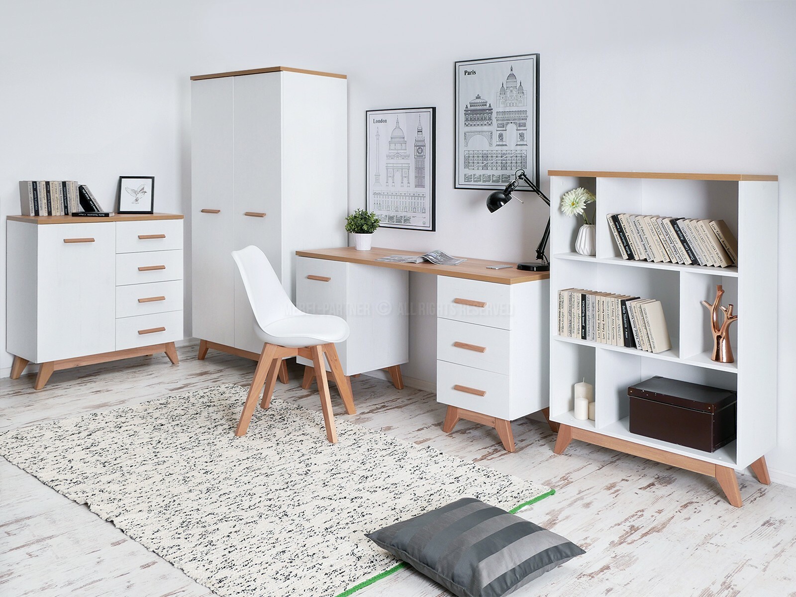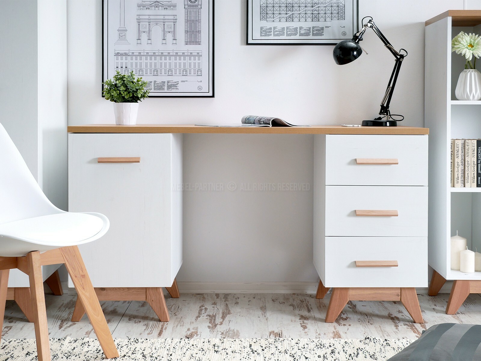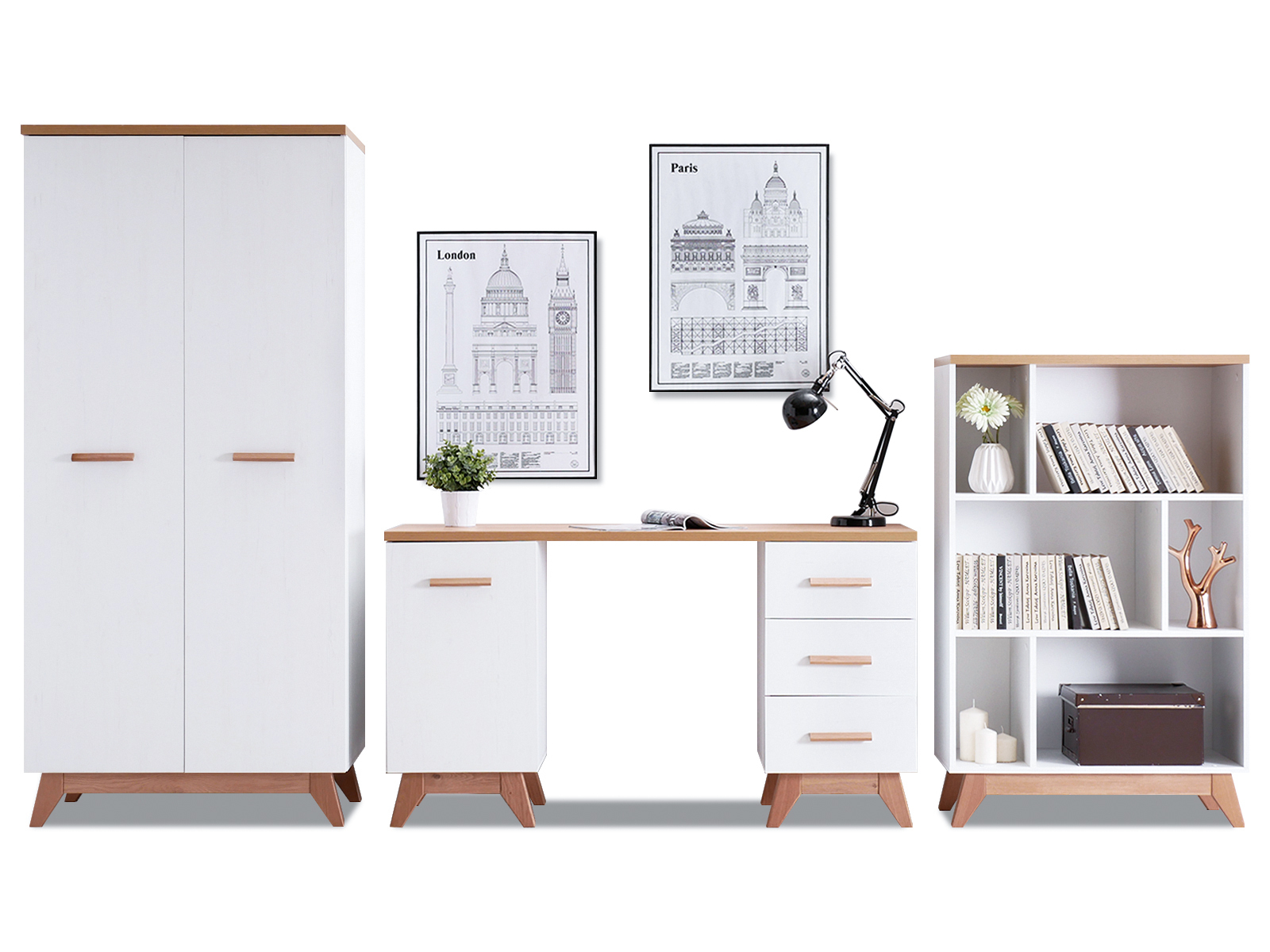 Nábytek do studentského pokoje Bajas 05 (bílý + dub)