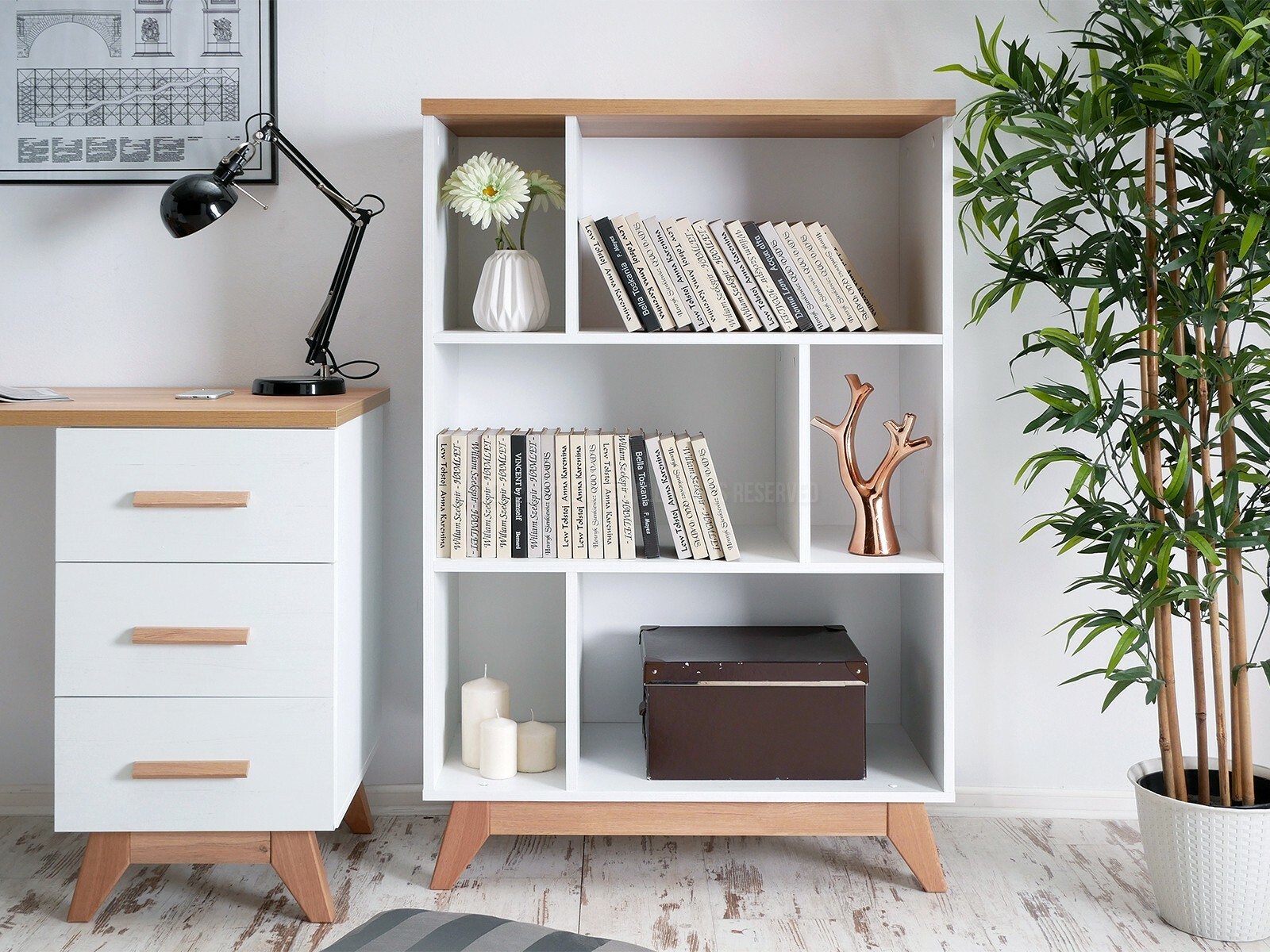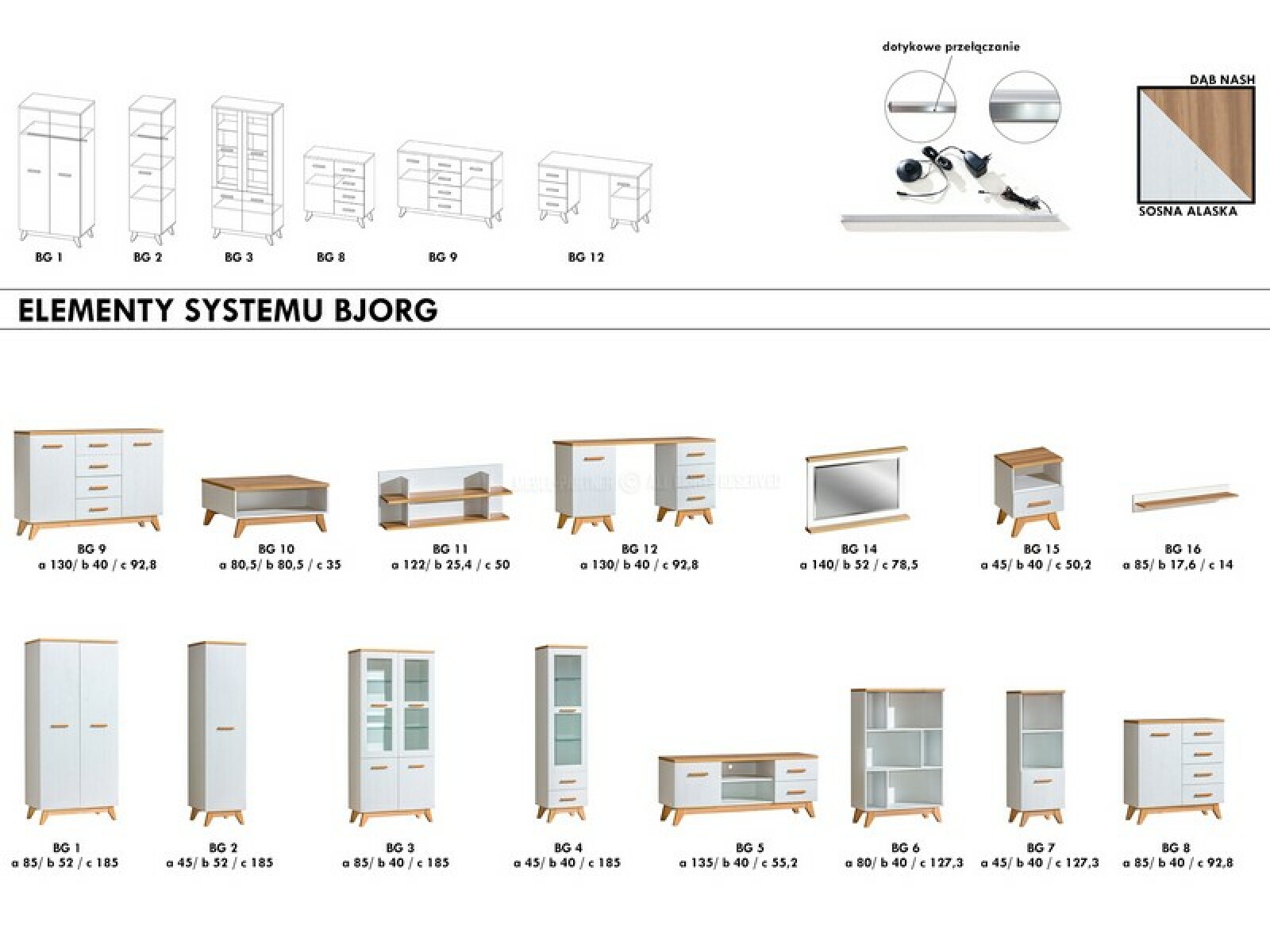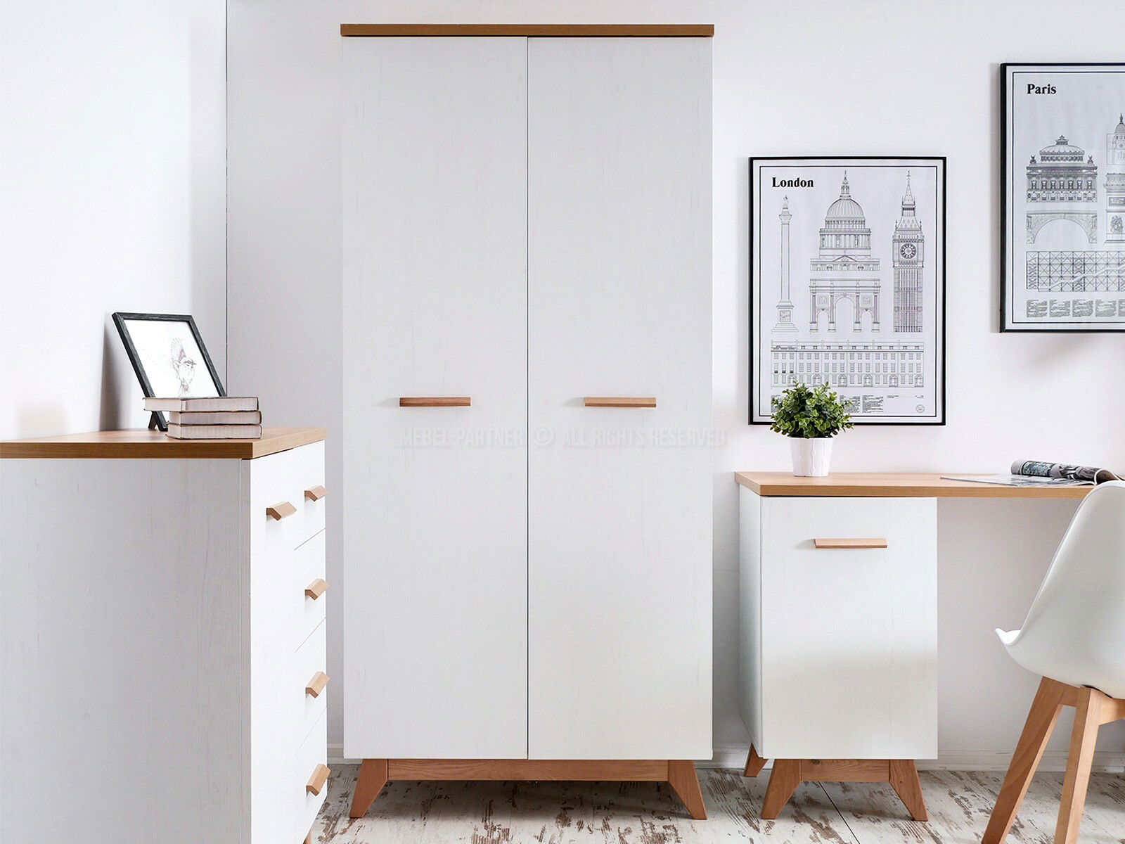 Nábytek do studentského pokoje Bajas 05 (bílý + dub)