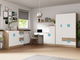 Dub světlý + bílá + tyrkysová