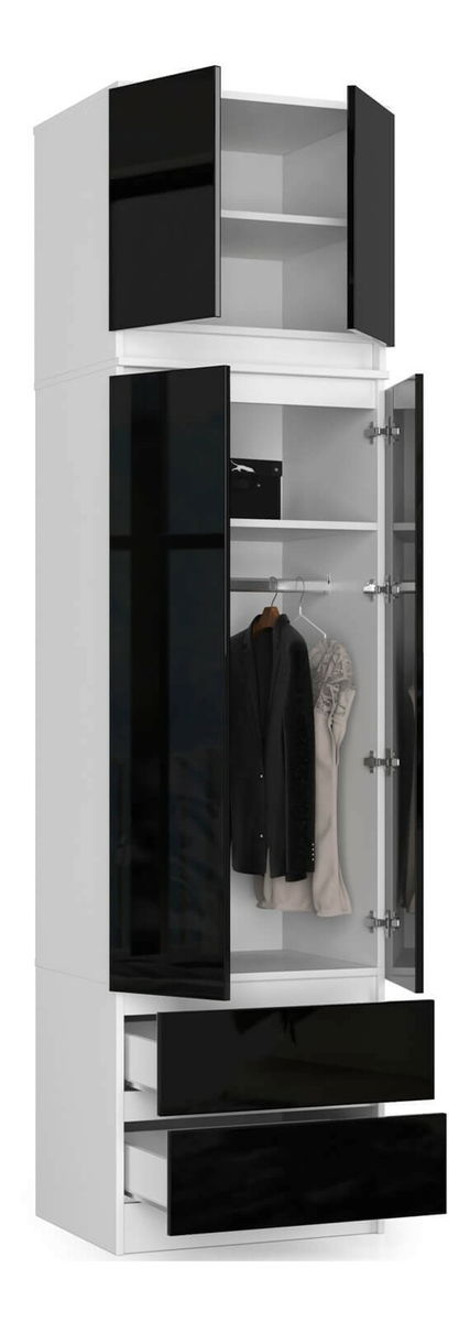 Zobrazit60 cm šatní nástavec Sashka II s dvířky je dokonalým řešením pro lidi, kteří chtějí zvýšit funkčnost svého stávajícího nábytku. Skříň se šuplíky, prostorem na ramínka na šaty a policemi je poměrně prostorná. Šatní nástavec je vyroben z oděru odolné laminované desky. Okraje nástavce jsou pečlivě upraveny odolnou ABS dýhou. Šatní skříň s nástavcem působí velmi efektně a lze ji umístit nejen do ložnice či na chodbu, ale také na reprezentativnější místo domu, jakým je obývací pokoj. Nábytek dobře poslouží v malých bytech, kde je velmi důležité racionální využití prostoru.
