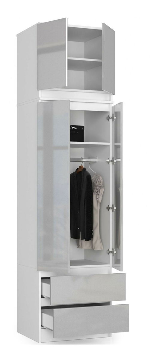 Zobrazit60 cm šatní nástavec Sashka II s dvířky je dokonalým řešením pro lidi, kteří chtějí zvýšit funkčnost svého stávajícího nábytku. Skříň se šuplíky, prostorem na ramínka na šaty a policemi je poměrně prostorná. Šatní nástavec je vyroben z oděru odolné laminované desky. Okraje nástavce jsou pečlivě upraveny odolnou ABS dýhou. Šatní skříň s nástavcem působí velmi efektně a lze ji umístit nejen do ložnice či na chodbu, ale také na reprezentativnější místo domu, jakým je obývací pokoj. Nábytek dobře poslouží v malých bytech, kde je velmi důležité racionální využití prostoru.