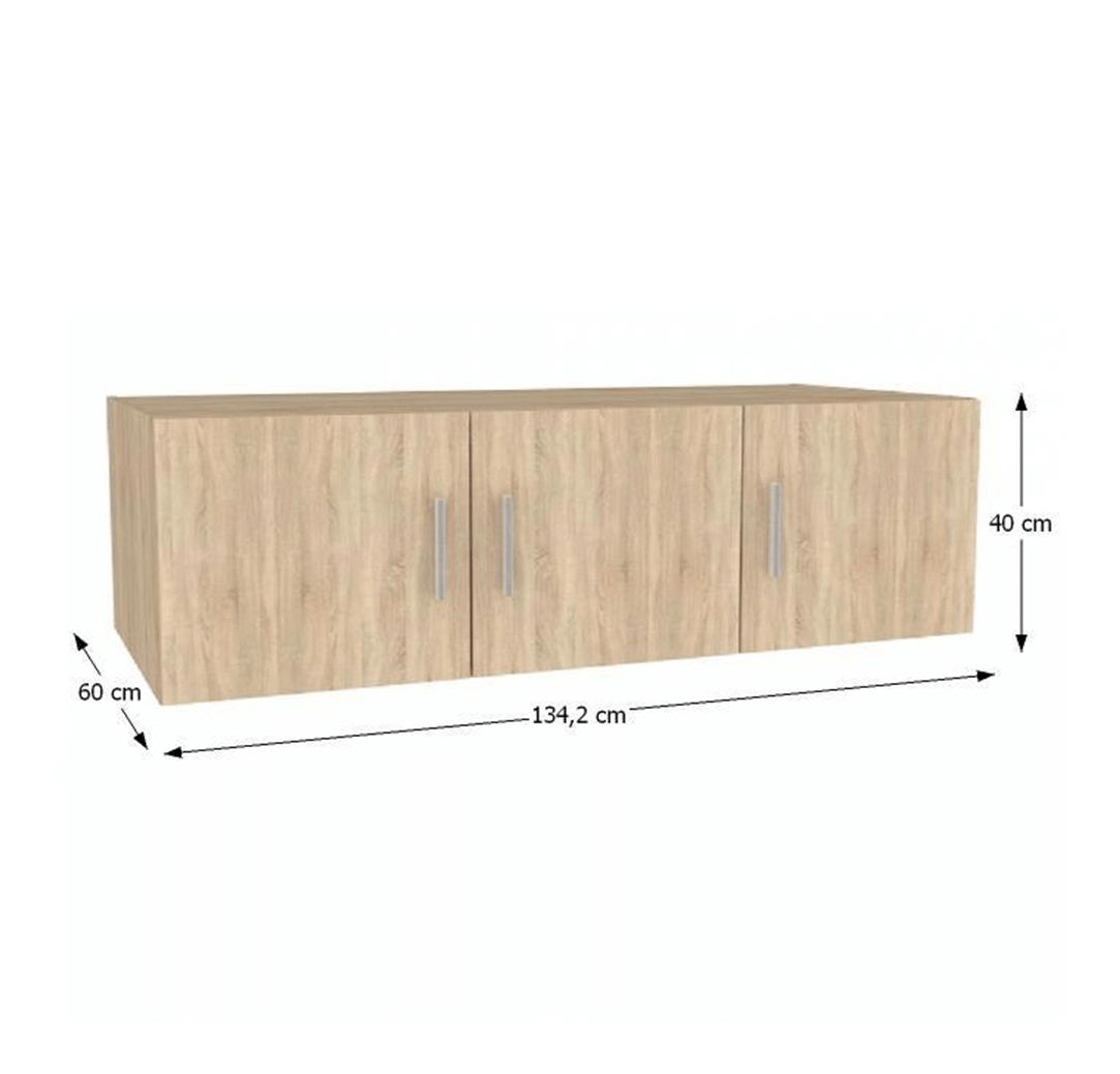 Nástavba na skříň Izetta Typ 7 (dub sonoma) o výšce 40 cm a hloubce 60 cm je ideálním doplňkem pro zlepšení úložného prostoru. Vyrobená z DTD laminovaného materiálu, o tloušťce 16 mm a v provedení dub sonoma, tato nástavba je kvalitním českým výrobkem. S tří dveřmi a rozmoři 134,2x60x40 cm, poskytuje dostatek úložného prostoru pro vaše věci. Dodává se v demontu a nabízí jednoduchou instalaci. Tato nástavba na skříň Izetta Typ 7 (dub sonoma) je dokonalým doplňkem pro vaši ložnici nebo šatník.