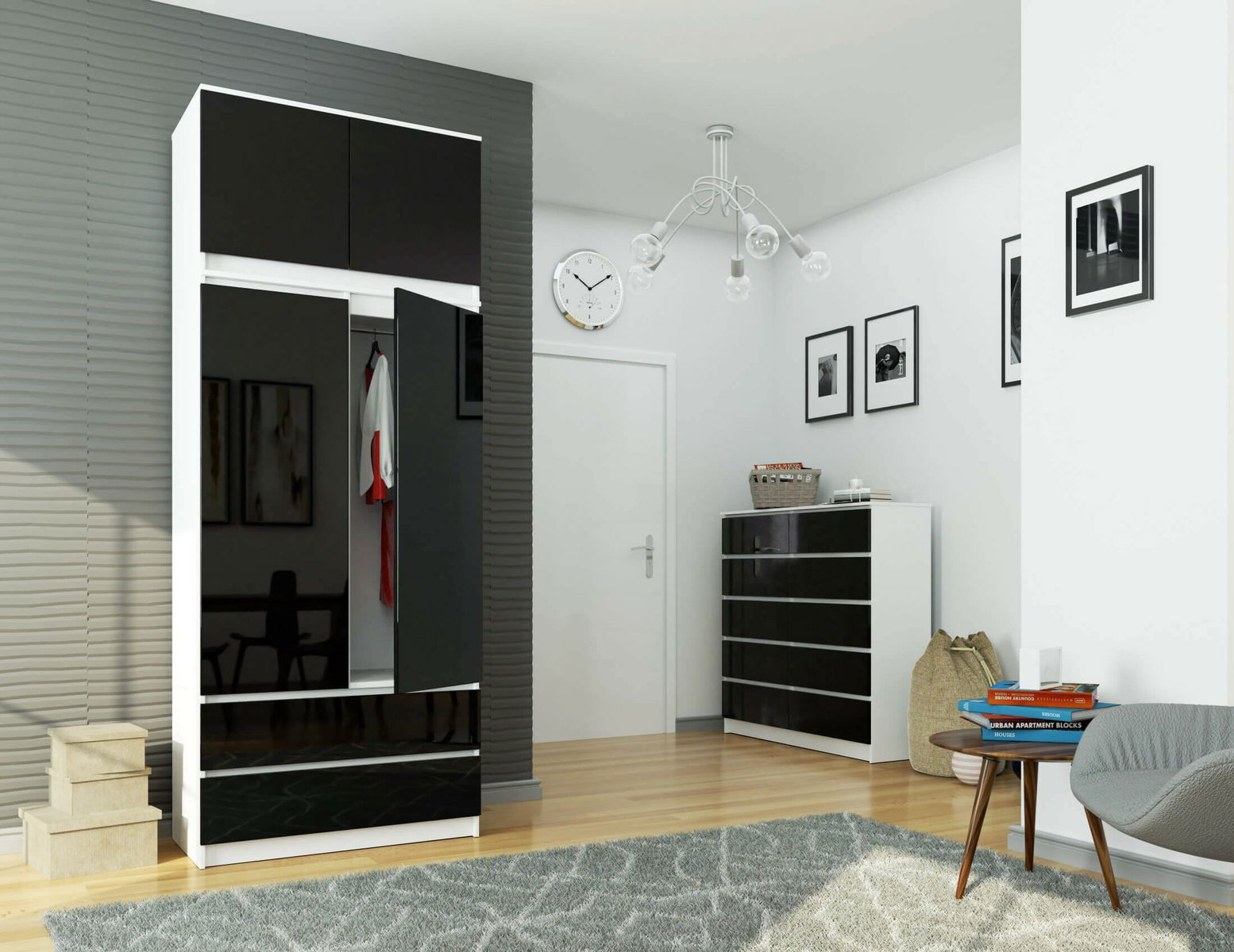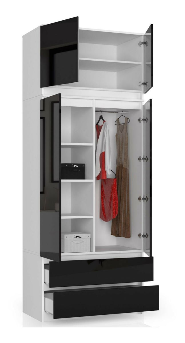 Zobrazit90 cm šatní nástavec Sashka se 2 dvířky je dokonalým řešením pro lidi, kteří chtějí zvýšit funkčnost svého stávajícího nábytku. Skříň se šuplíky, prostorem na ramínka na šaty a policemi je poměrně prostorná. Šatní nástavec je vyroben z oděru odolné laminované desky. Okraje nástavce jsou pečlivě upraveny odolnou ABS dýhou. Šatní skříň s nástavcem působí velmi efektně a lze ji umístit nejen do ložnice či na chodbu, ale také na reprezentativnější místo domu, jakým je obývací pokoj. Nábytek dobře poslouží v malých bytech, kde je velmi důležité racionální využití prostoru.