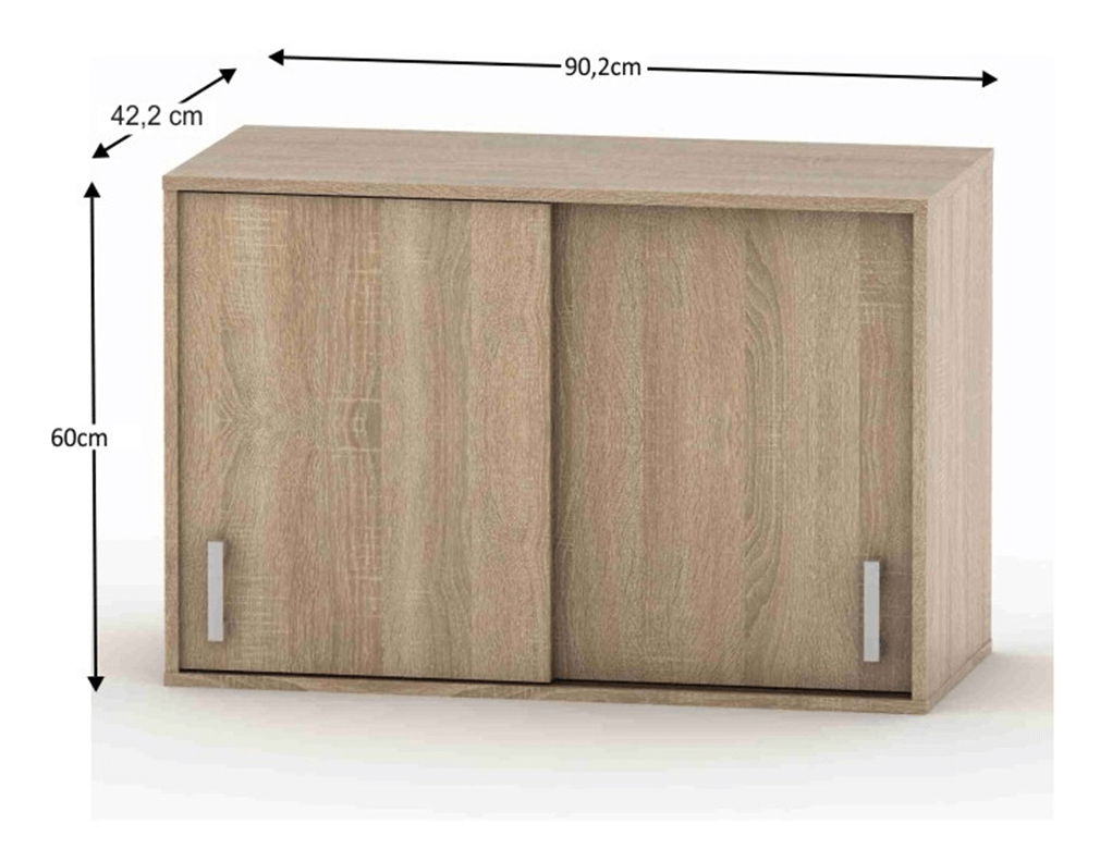 Nástavec ke skříni Breanna BE04-005-00 o výšce 60 cm a hloubce 42,2 cm je ideálním doplňkem pro váš obývací pokoj nebo ložnici. Tento nástavec je vybaven posuvnými dveřmi, které umožňují skrýt a ochránit obsah. Vyroben je z kvalitní DTD laminované desky, která zaručuje dlouhou životnost a odolnost. Nástavec je k dispozici v moderním dubu sonoma o velikosti 90x42,2x60 cm. S tloušťkou materiálu korpusu 16 mm je tento český výrobek robustní a spolehlivý. Produkt je dodáván v demontu, který zaručuje jednoduchou montáž. S tímto nástavcem si můžete efektivně využít prostor a zároveň přidat eleganci a funkčnost vašemu nábytku.