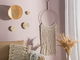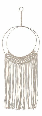 Tato nástěnná dekorace dodá každé kanceláři nebo obývacímu pokoji osobitý charakter a vyplní prázdné místo na zdi. Je vyrobena z přírodního materiálu a vláken, která volně visí na kulatém rámu. Můžete ji zavěsit na zeď nad krb, pracovní stůl nebo pohovku.