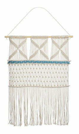 Zútulněte svůj interiér touto nástěnnou dekorací v boho stylu. Je vyrobena z bavlny a je velmi příjemná na pohled. Díky béžovému provedení s modrým detailem se z ní stává poutavý bytový doplněk. Jelikož má kompaktní velikost, lze ji zavěsit do téměř jakékoli místnosti, takže si jím můžete zkrášlit obývací pokoj, ložnici nebo chodbu. Ozdobné třásně ve spodní části evokují rustikální a venkovský styl a díky tomu nejlépe vynikne právě v interiérech zařízených v podobných stylech.