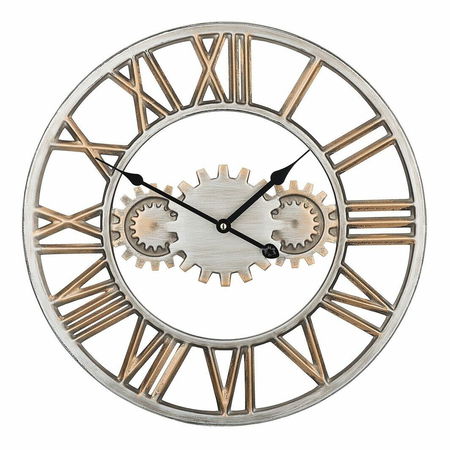 Tyto mimořádně zajímavé nástěnné hodiny budou praktickou dekorací každé stěny. Hodiny inspirované industriálním stylem jsou vyrobeny ze železa, díky čemuž jsou pevné a odolné. Ciferník je doplněn římskými číslicemi z pozlaceného železa, které dokonale doplňují design hodin. Jsou vhodné do interiérů v industriálním, moderním nebo vintage stylu.