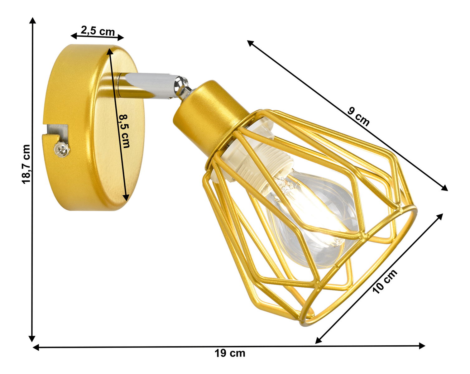 Nástěnná lampa Oakley Typ 2 (zlatá) má výšku 18,7 cm, šířku 19 cm a hloubku 10 cm. Tato lampa je součástí kolekce Onyx, která přináší nové typy svítidel. Je vyrobena z bílého kovu a její design je okouzlující – má podobu zlaté kovové klece a připomíná diamant. Lampa je ukotvena do podstavce a má ohebný kloub, díky kterému je možné ji pohybovat a otáčet ramenem na všechny světové strany. Tato lampa je vhodná nejen pro vkusně zařízené domovy, ale také pro stylové kavárny, restaurace a kluby. Žárovka není součástí balení, nicméně můžete ji dokoupit typu E14.