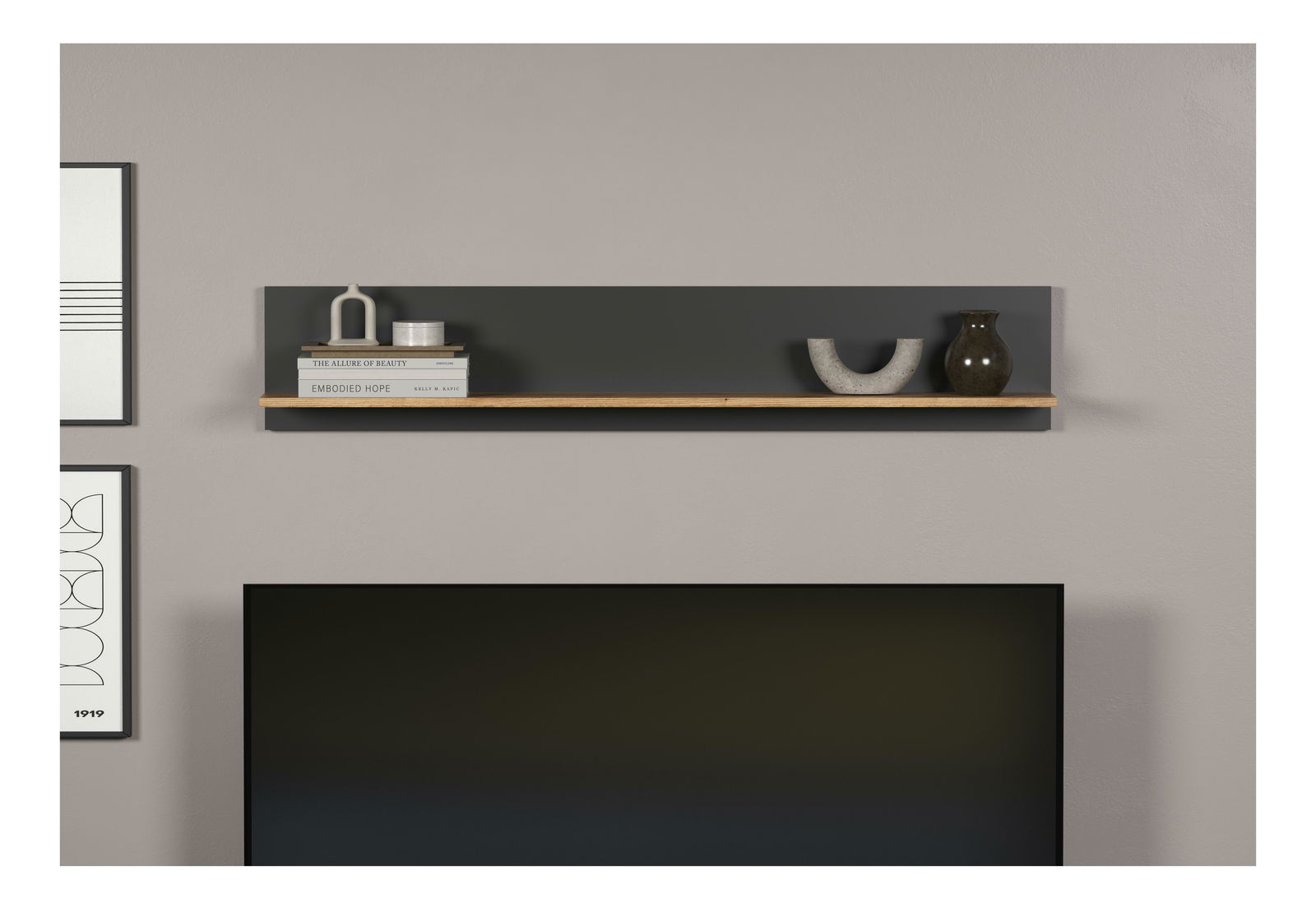 Nástěnná police Esferas (grafit + dub evoke)