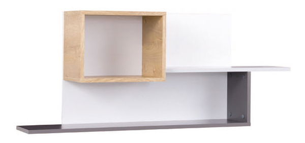 - Nástěnná police Juna 12 (bílá + grafit + šedá + dub lefkas)