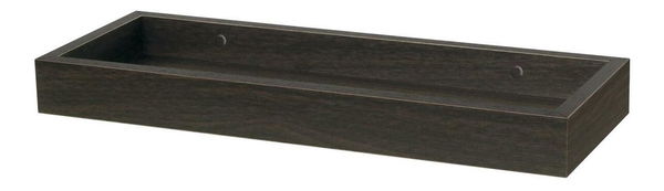 Moderní minimalistická polička se zvýšenými okraji v provedení dekor ořech. Rám je z MDF, povrch lamino v dřevěném dekoru. Balení obsahuje poličku, kovový držák, šrouby a hmoždinky pro uchycení. Nosnost poličky je 5-15 kg podle druhu nosného zdiva. Tento druh poličky lze využít jako odkládací na drobné předměty.