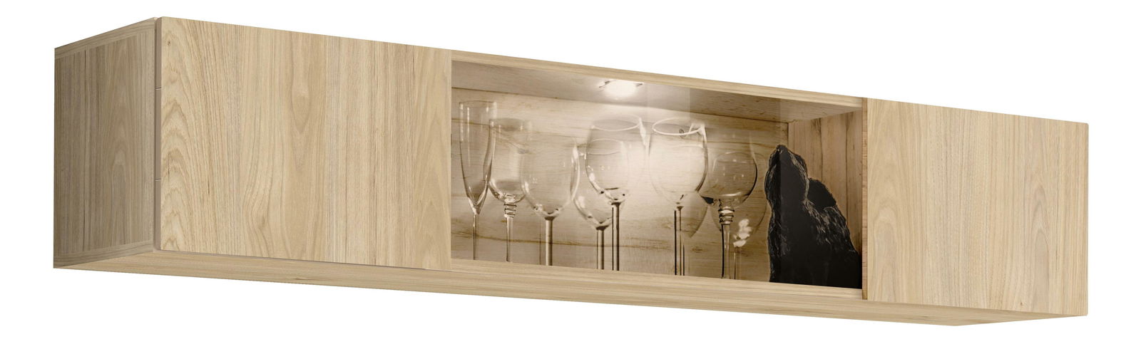 Moderní vitrína na stěnu Ferryhill s částečně prosklenou přední stranou je ideálním řešením pro vystavení dekorací, skla nebo doplňků. Vnitřek vitríny je rozdělen na tři části, prosklená část je osvětlená LED světlem, díky čemuž vynikne každý detail. Přední díl vitríny se otevírá směrem nahoru pomocí plynových pístů, které zajišťují snadné a plynulé otevírání. Bezúchytkové zavírání zajišťuje systém push-click – stačí jemně zatlačit. Ať už hledáte místo na oblíbený porcelán nebo chcete svůj domov obohatit o designový prvek, vitrína je ideální volbou.