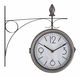 Tyto jedinečné oboustranné nástěnné hodiny jsou originálním doplňkem v retro stylu. Jejich kulatý tvar se železným rámem ve stříbrné a bílé barvě vynikne v jakémkoli interiéru. Díky ciferníku připomínajícímu staniční hodiny jsou netradičním kouskem, který se jistě stane středem vašeho interiéru. Jsou vyrobeny z vysoce kvalitních materiálů, které se snadno udržují.