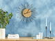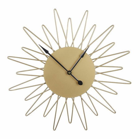 Tyto nástěnné hodiny dodají vašemu interiéru moderní šmrnc, ať už se je rozhodnete zavěsit kdekoli. Hodiny ve tvaru slunce s ciferníkem bez číslic vypadají jedinečně a originálně. Jsou vyrobeny ze snadno udržovatelného kovu, takže péče o ně je jednoduchá.