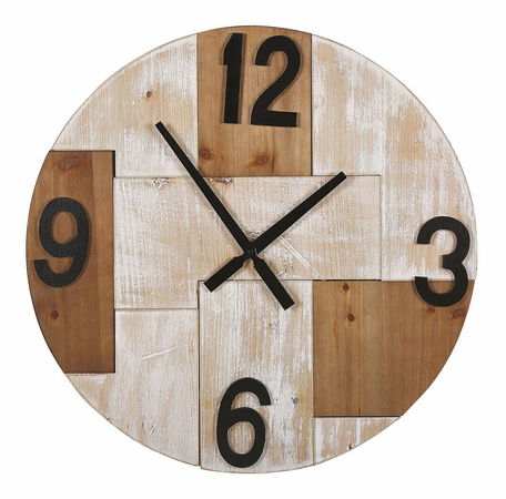 Tyto nástěnné hodiny jsou nejen krásným, ale také praktickým doplňkem každého moderního prostoru. Ručně vyrobený rám z MDF se může pochlubit přirozeně vypadající povrchovou úpravou ve světlých odstínech, která jim dodává rustikální nádech. Kontrastní ručičky a čísla v černé barvě zvýrazňují design hodin svým minimalistickým šarmem. Zavěste je do obývacího pokoje, předsíně nebo kuchyně a váš interiér bude působit mimořádně stylově.