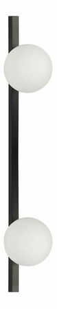 Minimalistické nástěnné svítidlo, které zaujme svým moderním provedením. Elegantní kovový podstavec ve výrazné černé barvě velmi příjemně ladí s kulatými bílými skleněnými stínítky, které působí jednoduše a moderně. Osvětlete svůj domov pomocí svítidla, které je kombinací funkčnosti, jednoduchého provedení a sofistikovaného designu.