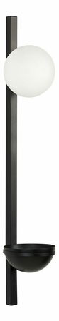 Minimalistické nástěnné svítidlo, které zaujme svým moderním provedením. Elegantní kovový podstavec ve výrazné černé barvě velmi příjemně ladí s kulatým bílým skleněným stínítkem, které působí jednoduše a moderně. Osvětlete svůj domov pomocí svítidla, které je kombinací funkčnosti, jednoduchého provedení a sofistikovaného designu. Do květináče, který je součástí svítidla, můžete umístit umělou rostlinu a zkrášlit tak svůj domov prvkem, který evokuje krásu přírody.