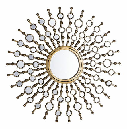 Zrcadlo, které zaručeně rozzáří každý prostor. Zlatý rám připomíná sluneční paprsky, a je tedy perfektním doplňkem do stylu boho. S průměrem 70 cm bude vhodným doplňkem do předsíně, koupelny nebo i do obývacího pokoje. Díky svému designu bude středem pozornosti při každé návštěvě Vašich známých.