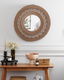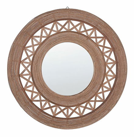 Doplňte svůj obývací pokoj, ložnici nebo chodbu tímto dřevěným zrcadlem a dodejte tak interiéru nádech rustikálního stylu. Kulatý texturovaný rám, ručně vyrobený z bambusového dřeva, dělá z tohoto zrcadla poutavou nástěnnou dekoraci. Díky přiloženému háčku můžete zrcadlo jednoduše zavěsit nad konzolový stolek nebo komodu.