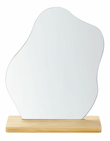 Vylepšete zařízení svého interiéru pomocí tohoto jedinečného zrcadla s nepravidelným tvarem, které zaujme všechny hosty a zároveň opticky zvětší prostor. Stojan je vyroben z kvalitního bambusového dřeva, takže je odolný a snadno se udržuje. Zrcadlo je lehké, takže jej lze kdykoli přemístit z místa na místo. Díky minimalistickému designu se hodí k různým stylům interiérového zařízení.