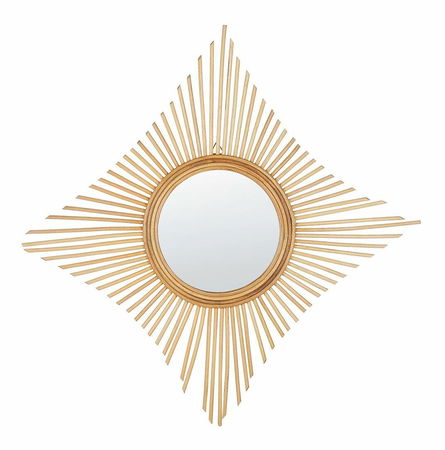 Moderně tvarované zrcadlo se stane poutavým doplňkem vašeho interiéru. Jeho rám je vyroben z přírodního ratanového proutí formovaného do tvaru diamantu, což zrcadlu dodává jedinečný vzhled, který se hodí do většiny ložnic či obýváků. Díky předinstalovaným montážním háčkům je jeho instalace opravdu jednoduchá.