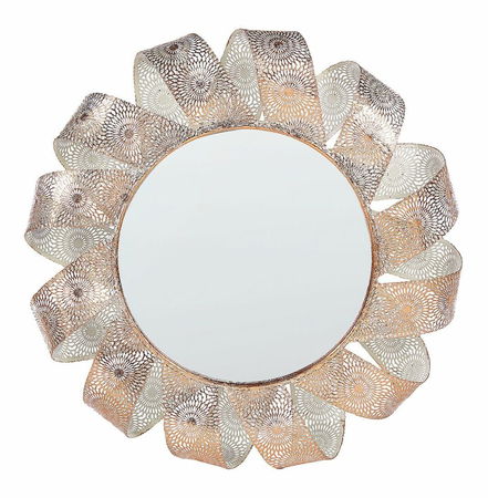 Okouzlující design tohoto nástěnného zrcadla vnese eleganci do jakékoli místnosti. Krásně tvarovaný rám je vyroben z velmi kvalitního kovu s povrchovou úpravou v teplém odstínu bílé se špetkou měděné barvy. Tato bytová dekorace dodá vašemu interiéru nádech vintage stylu a stane se skvělým doplňkem obývacího pokoje, ložnice nebo chodby a vizuálně zvětší jakýkoli prostor.