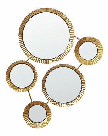 Sada 5 zrcadel je ideální do pokojů ve stylu glamour. Díky zlatému kovovému rámu, který je odolný a zároveň poutavý, dodává celému kousku hypnotizující efekt. Zrcadlový set plní svoji základní funkci a slouží jako dekorace, která bude ozdobou vaší stěny, skvěle se vyjímá nad komodou či konzolí a je výrazným doplňkem každé místnosti.