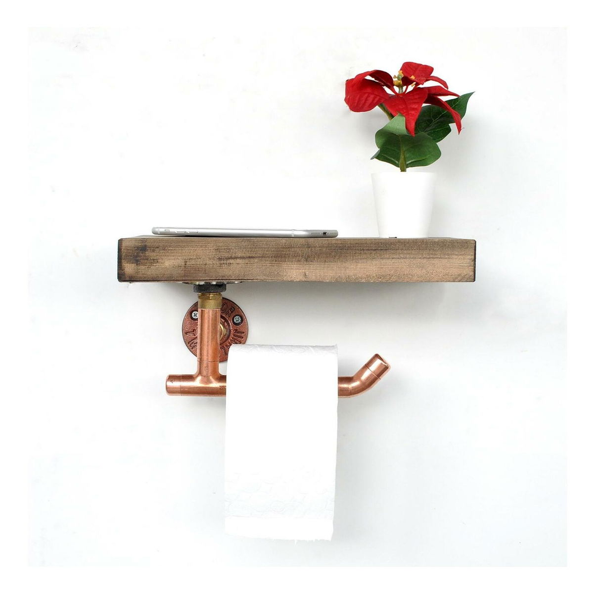 Nástěnný držák na toaletní papír Nenanu 19 (růžové zlato + ořech)