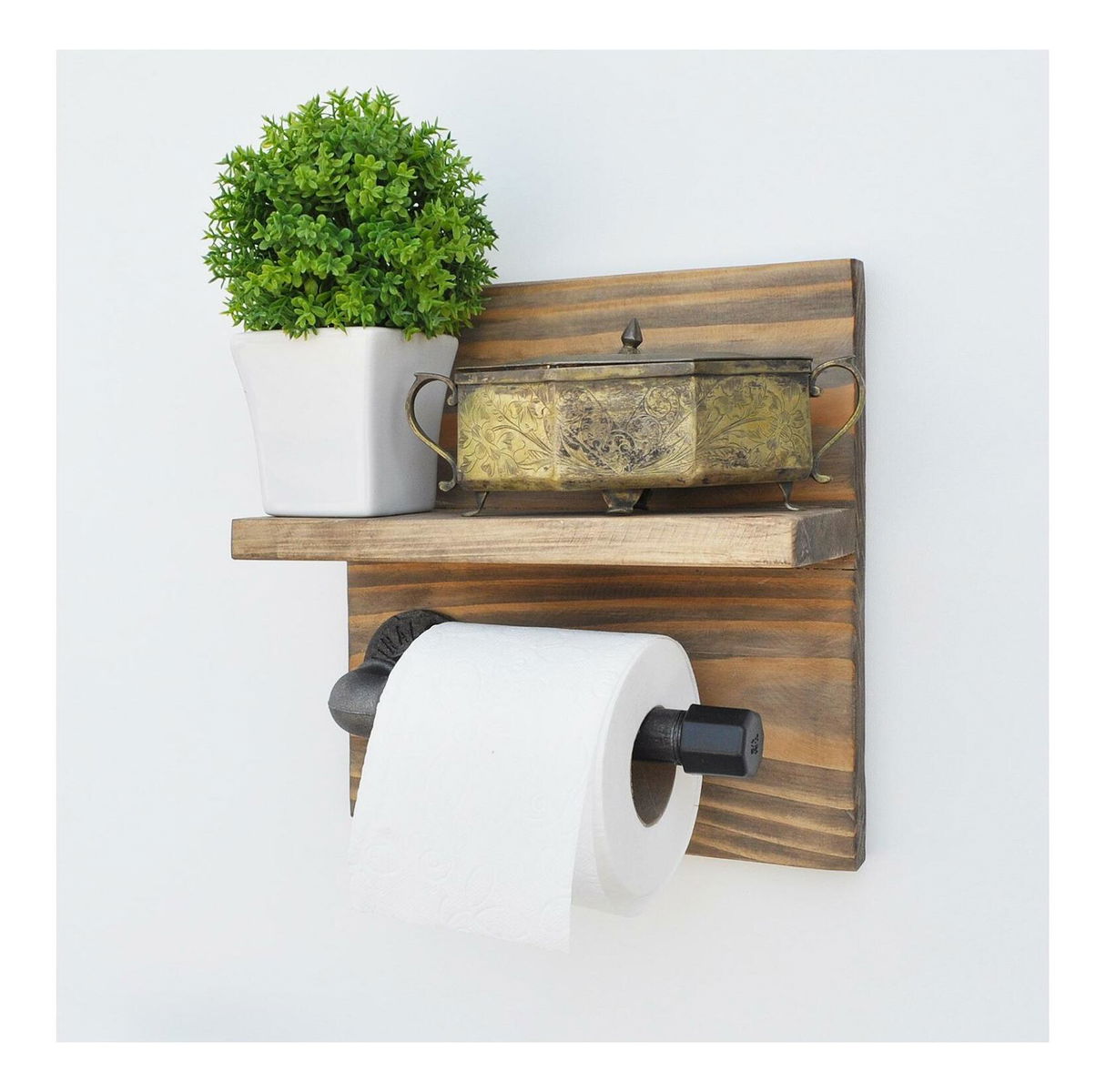 Nástěnný držák na toaletní papír Nenanu 7 (ořech + černá)