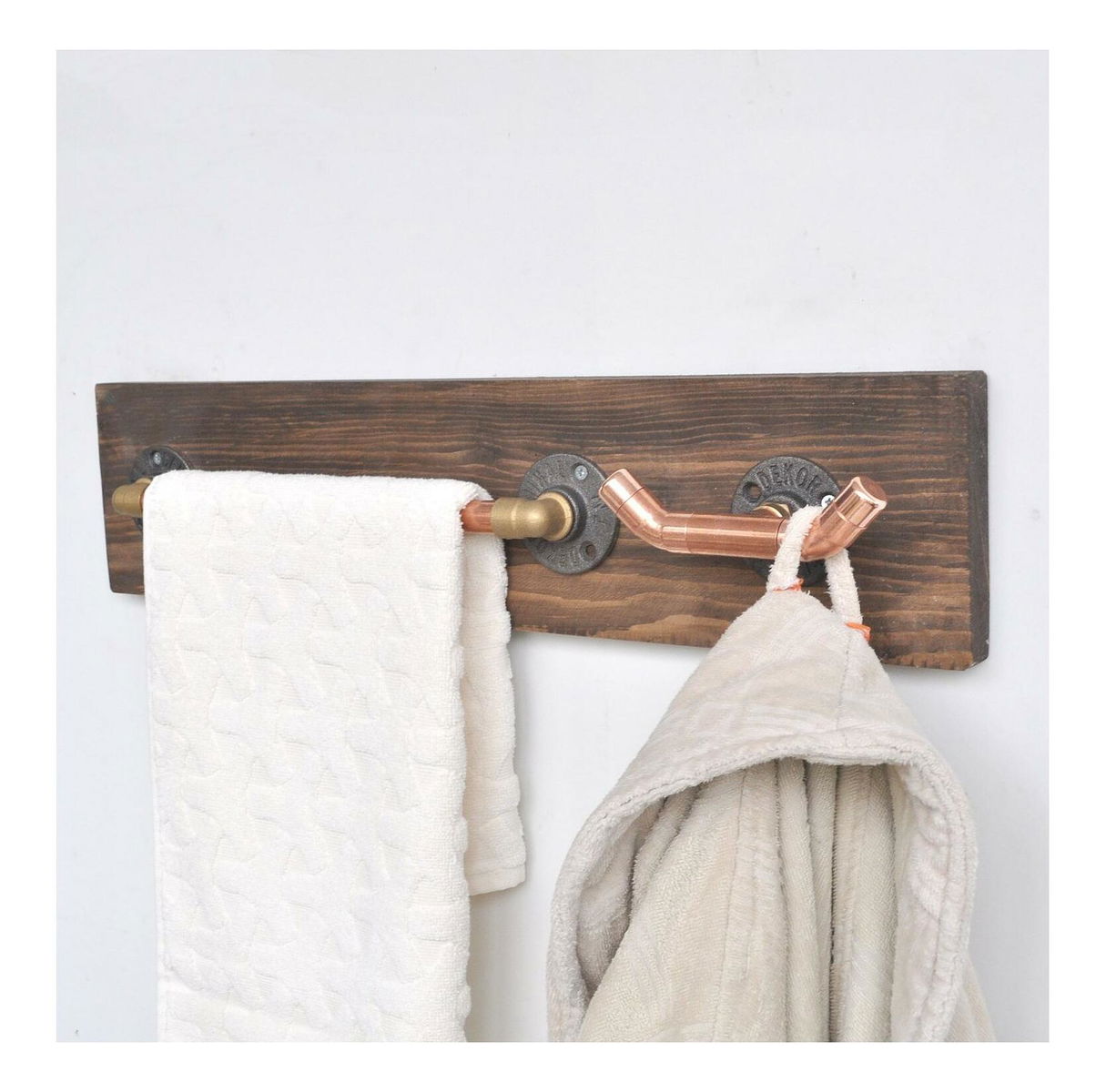 Nástěnný věšák Nenanu 4 (růžové zlato + ořech)