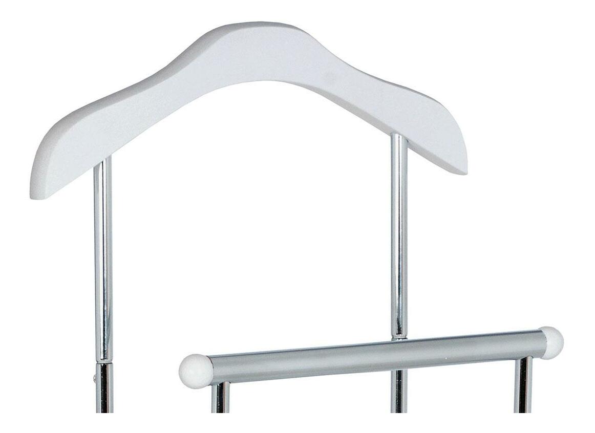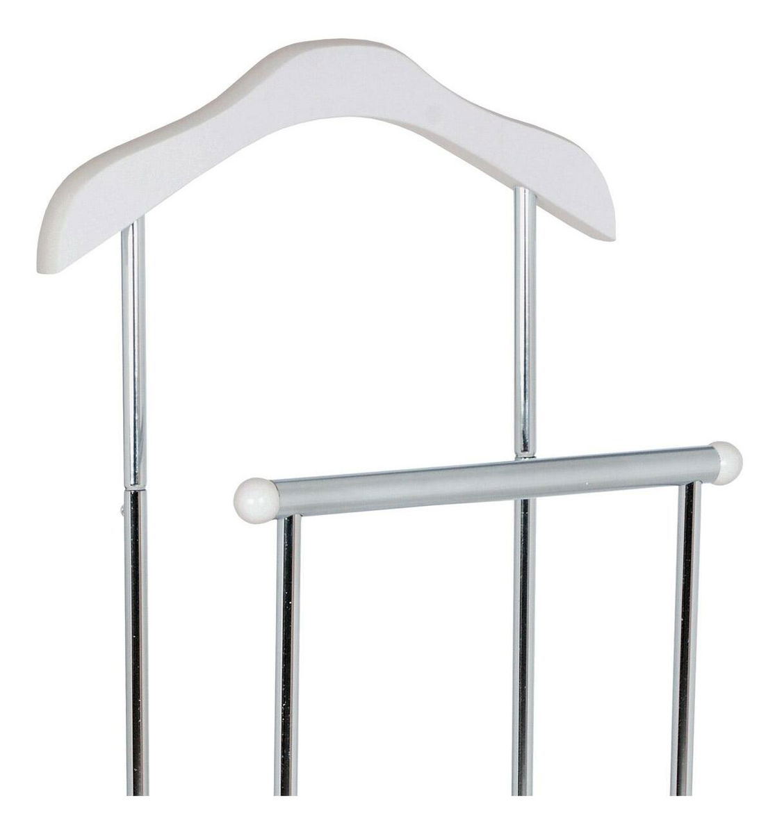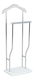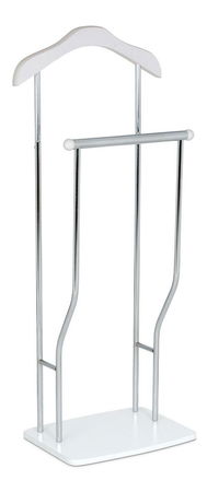 Praktický minimalistický němý sluha v nádechu retra v sobě kombinuje výrazné prvky z MDF v elegantním bílém matném laku s kovovými nosnými díly v chromované povrchové úpravě. Výška 108 cm Vám umožní zavěšení oblečení i doplňků zcela bez pomačkání. Nosnost stojanu je až 6 kg rovnoměrně rozprostřené zátěže, hmotnost 4 kg. I proto je snadno přenositelný a lze jej umístit podle momentální potřeby i nálady. Stylem a jednoduchostí se hodí do jakéhokoli interiéru. Využití je nepřeberné, záleží jen na Vás.