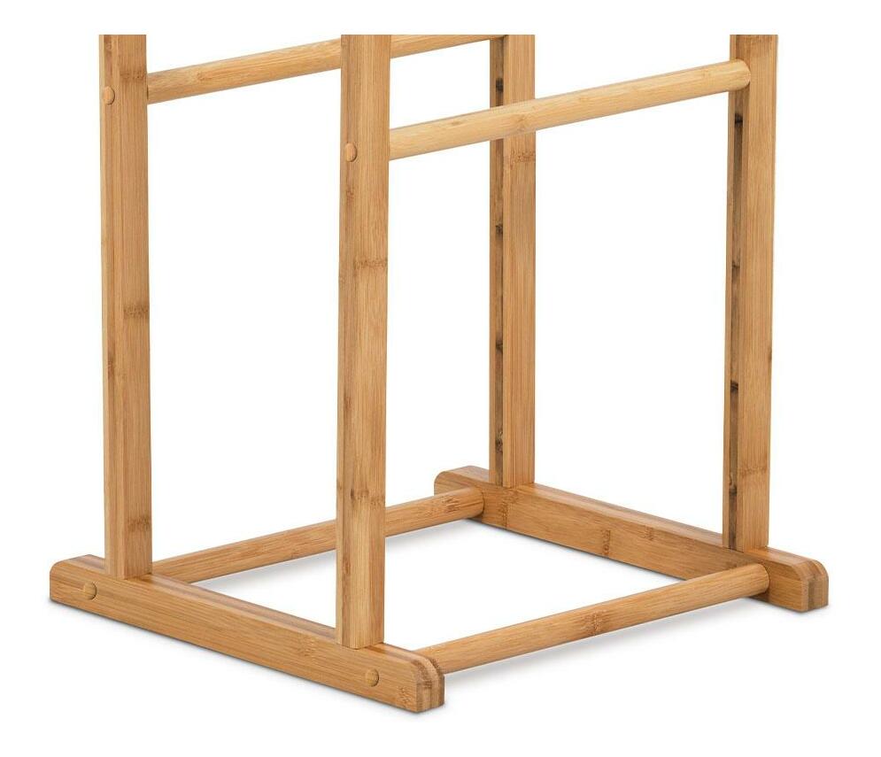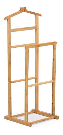Praktický němý sluha v nádechu retra a přírody. Konstrukce je z masivního bambusu v přírodní povrchové úpravě a lakována transparentním lakem. Výška 103 cm i zdvojený rám Vám umožní zavěšení mnoha kusů oblečení i doplňků, zcela bez pomačkání a na jednom místě. Což určitě oceníte při ranním stresu namísto hledání po celém bytě. Nosnost stojanu je až 5 kg rovnoměrně rozprostřené zátěže, hmotnost necelé 3 kg. I proto je snadno přenositelný a lze jej umístit podle momentální potřeby i nálady. Stylem a jednoduchostí se hodí do jakéhokoli interiéru. Využití je nepřeberné, záleží jen na Vás.