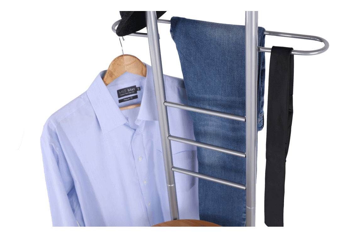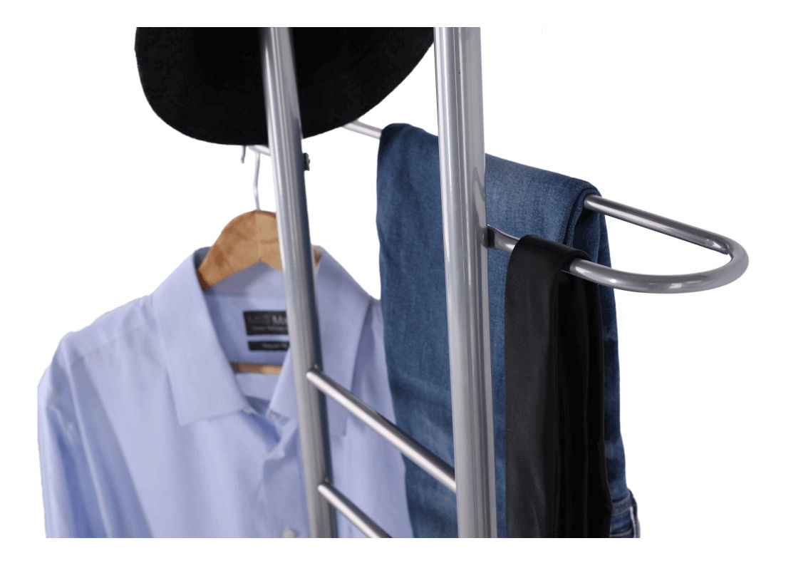 Praktický stabilný vešiak, veľa oblečenia sa dá povešať.