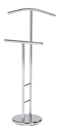 Kovový němý sluha v provedení chrom se dvěma nohama a dvěma rameny stojící na kruhové základně.