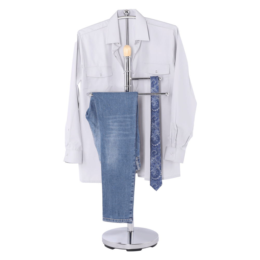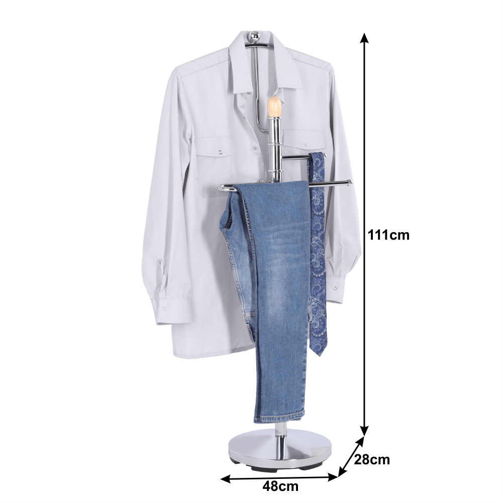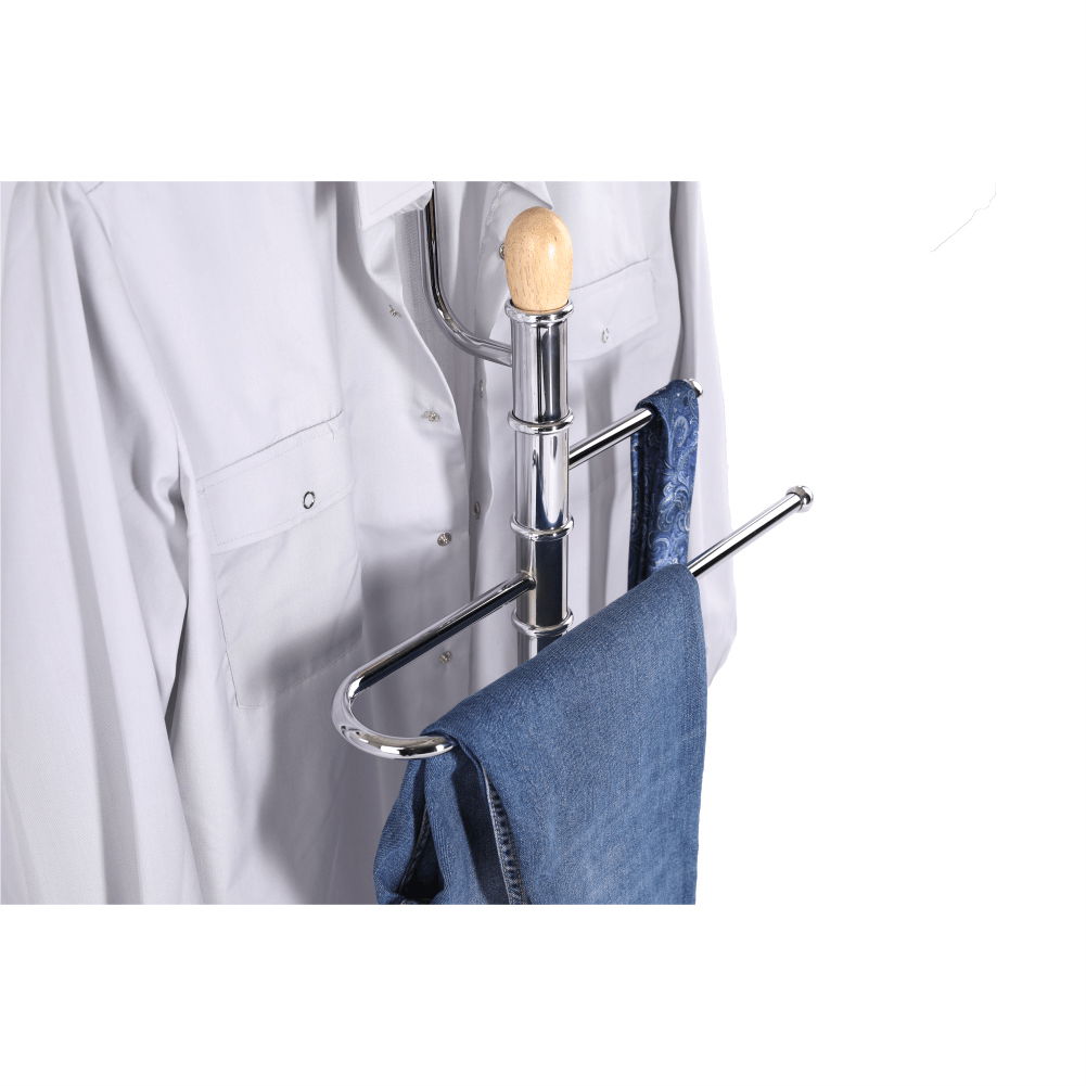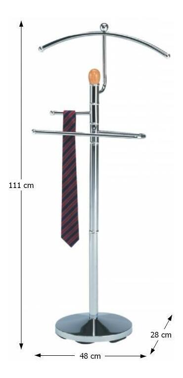 Věšák, tzv. němý sluha, je praktickou pomůckou v každém pokoji. Nabízí možnost prověšení saka, kalhot, popřípadě kteréhokoliv jiného oděvu. Chromová konstrukce je doplněna o jednu záslepku v barvě dřeva buk.