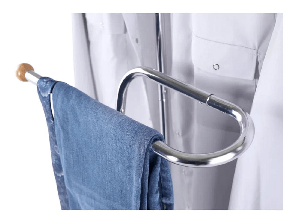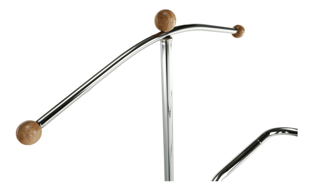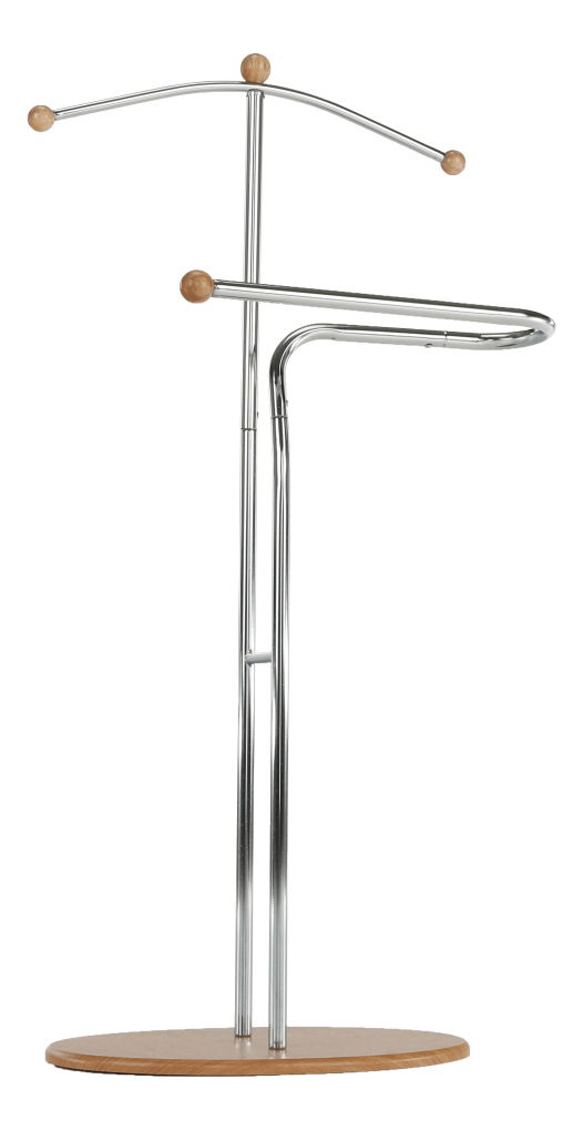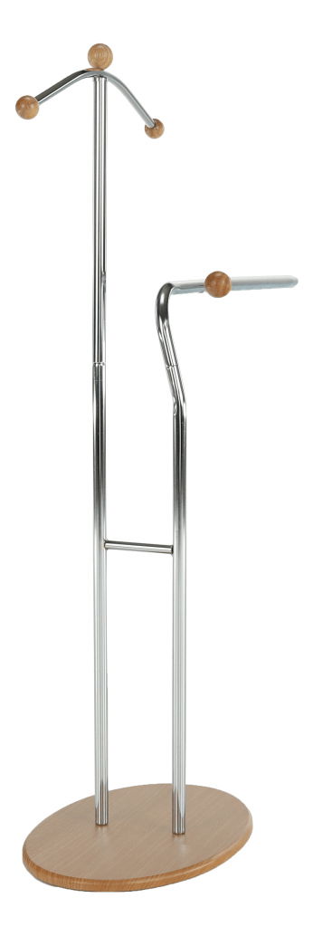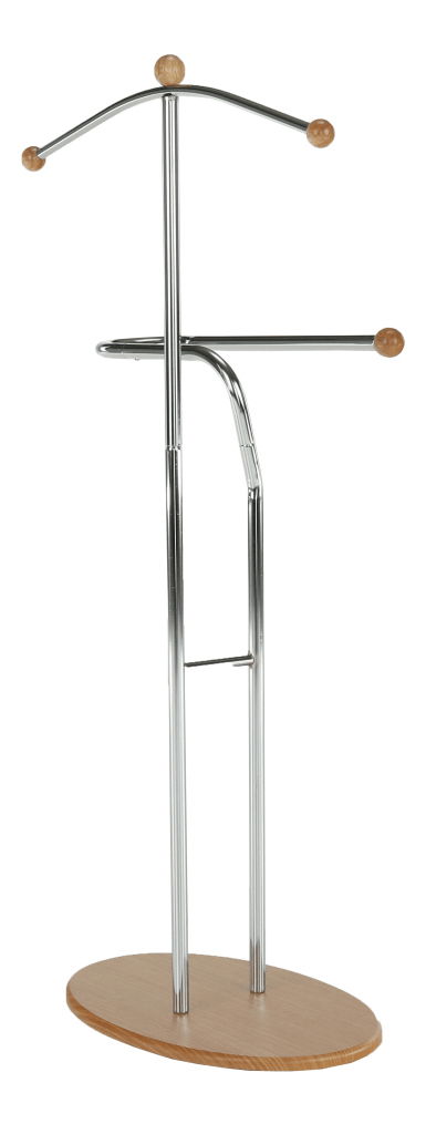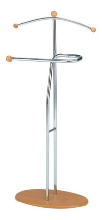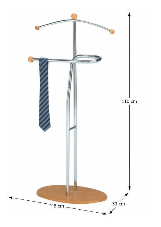 Věšák, tzv. němý sluha, je praktickou pomůckou v každém pokoji. Nabízí možnost prověšení saka, kalhot, popřípadě kteréhokoliv jiného oděvu. Chromovou konstrukci doplňuje foliovaná MDF v barvě dřeva buk.