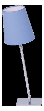 Velmi pěkná stolní lampa TK1000 je moderní a jednoduchá lampa s minimalistickým designem. Stínítko lampy je vyrobeno z bavlny v modrém barevném podání a kovová konstrukce je v pochromovaném provedení.