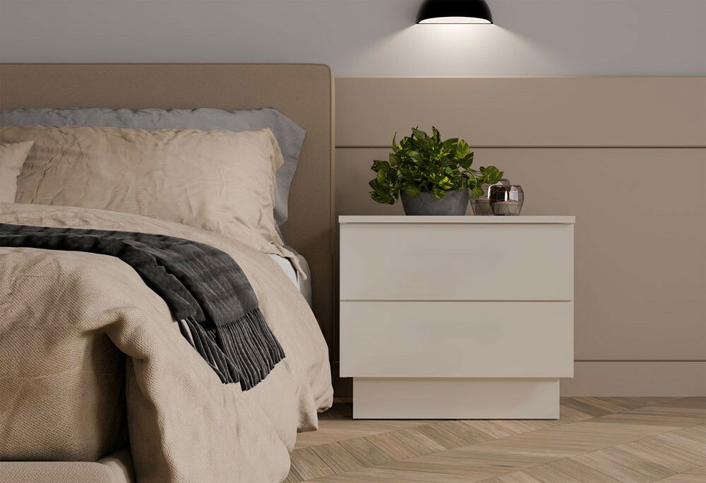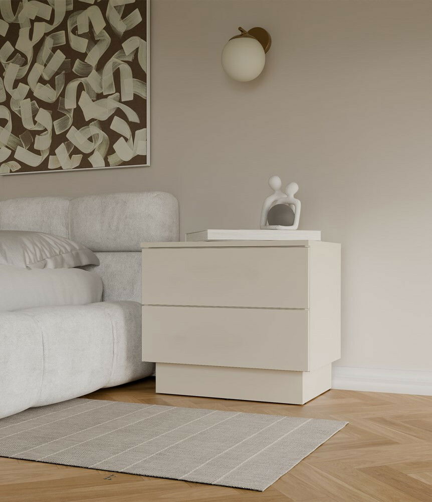 ZobrazitNoční stolek Ajuste 1 v elegantní barvě kašmír je ideálním doplňkem pro moderní i klasické interiéry. Se dvěma prostornými šuplíky, které jsou bezúchytové a otevírají se na klik, nabízí praktické řešení pro uskladnění všech potřebných drobností, jako jsou knihy, brýle či kosmetika. Jeho stabilní a estetická konstrukce z laminované dřevotřísky zajišťuje dlouhou životnost a snadnou údržbu. Tento multifunkční nábytek se skvěle hodí nejen vedle postele, ale také do obývacího pokoje či studentského pokoje.
