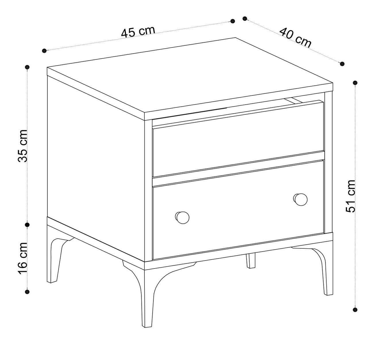 Noční stolek - Orana je praktickým a moderním doplňkem vaší ložnice. S výškou 51 cm, šířkou 45 cm a hloubkou 40 cm je dostatečně velký pro uskladnění knih, hodinek a dalších věcí, které potřebujete mít po ruce. Vyráběný je z kvalitní 100% melaminové desky, což zaručuje jeho odolnost a dlouhou životnost. Bílá barva dodává stolku čistý a elegantní vzhled, který se hodí do jakéhokoli interiéru. S Nočním stolkem - Orana získáte nejen praktický kus nábytku, ale také pěknou dekoraci pro vaši ložnici.