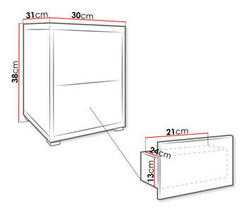 Noční stolek je ideální volbou pro ty, kteří hledají pohodlí a styl. Praktický úložný prostor pro drobné příslušenství, brýle a knihu pro čtení před spaním. Malý doplněk do ložnice, který doplňuje design interiéru a činí jej ještě útulnějším, mluvím o nočním stolku Alekto. Noční stolek je vybaven prostornými úložnými prostory a je nedílnou součástí úspěšného uspořádání ložnice. Světlý nábytek vytváří v ložnici přátelskou atmosféru. Mechanismus „push to open“ umožňuje přístup k položkám uloženým v zásuvkách. Umožňuje odhalit vnitřní prostor bez potřeby úchytů. Rozměry: šířka: 30 cm, výška: 38 cm, hloubka: 31 cm Provedení: 16 mm silná nábytková deska, PCV lemování, plastové nožičky (výška: 2,5 cm), válečková ložiska, systém otevírání "PUSH TO OPEN". Záruka: 24 měsíců