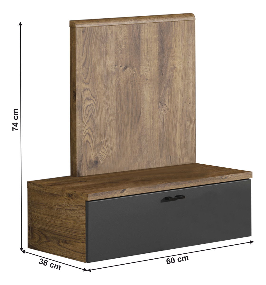 Noční stolek Amnezi (dub ribeck + grafit tmavý)