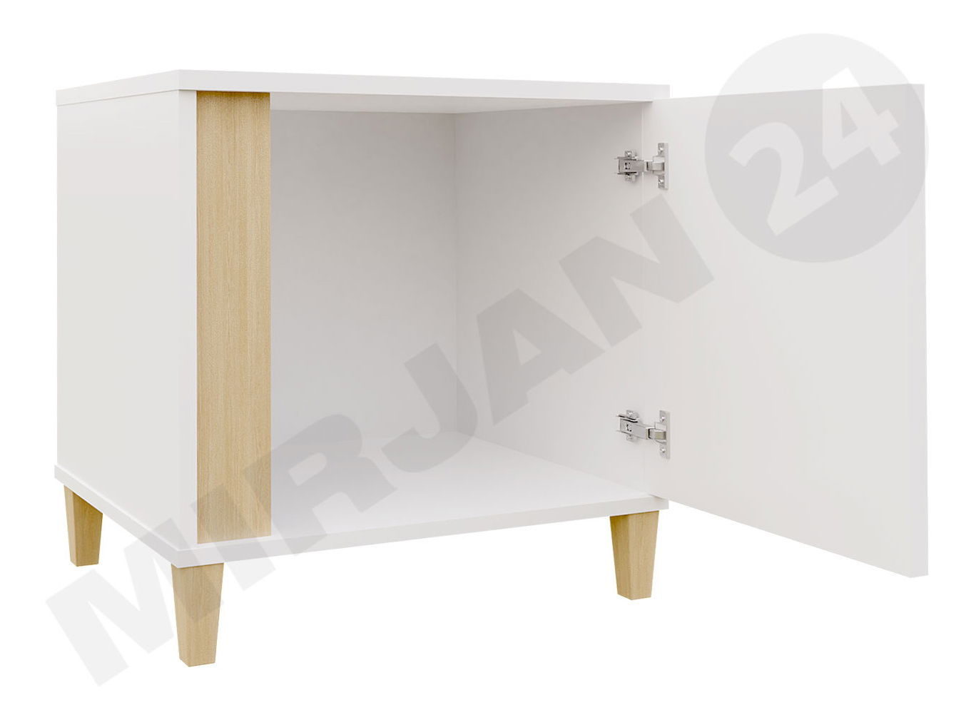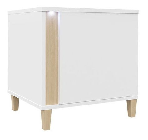 Noční stolek Aurelius-AR04 AR07 (bílá + bílá lesklá + přírodní)