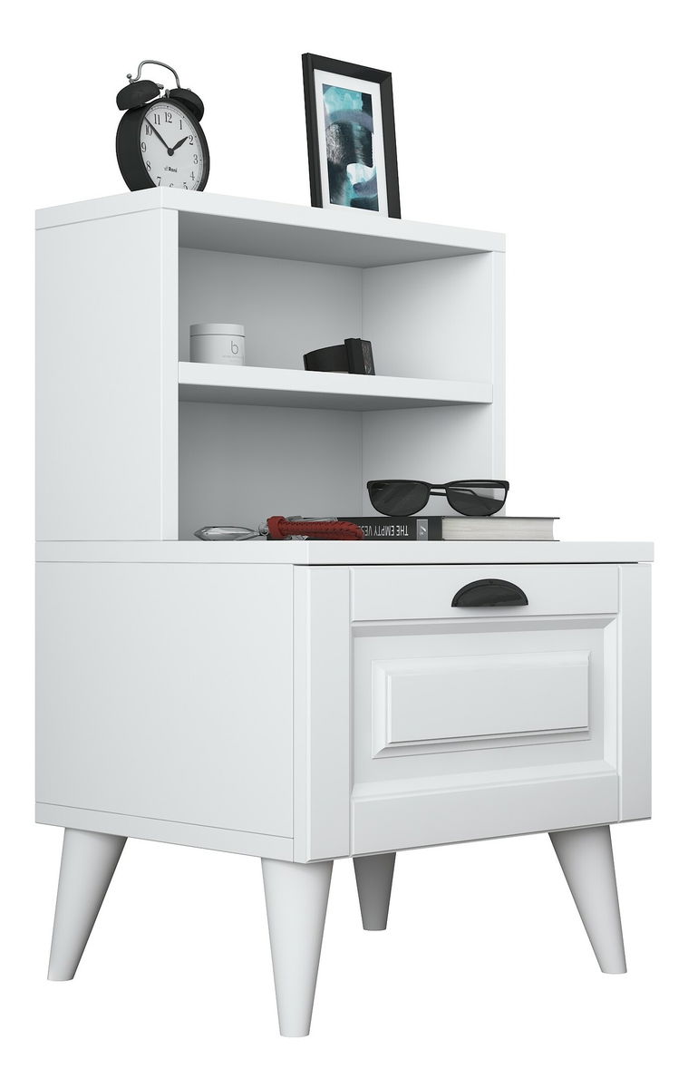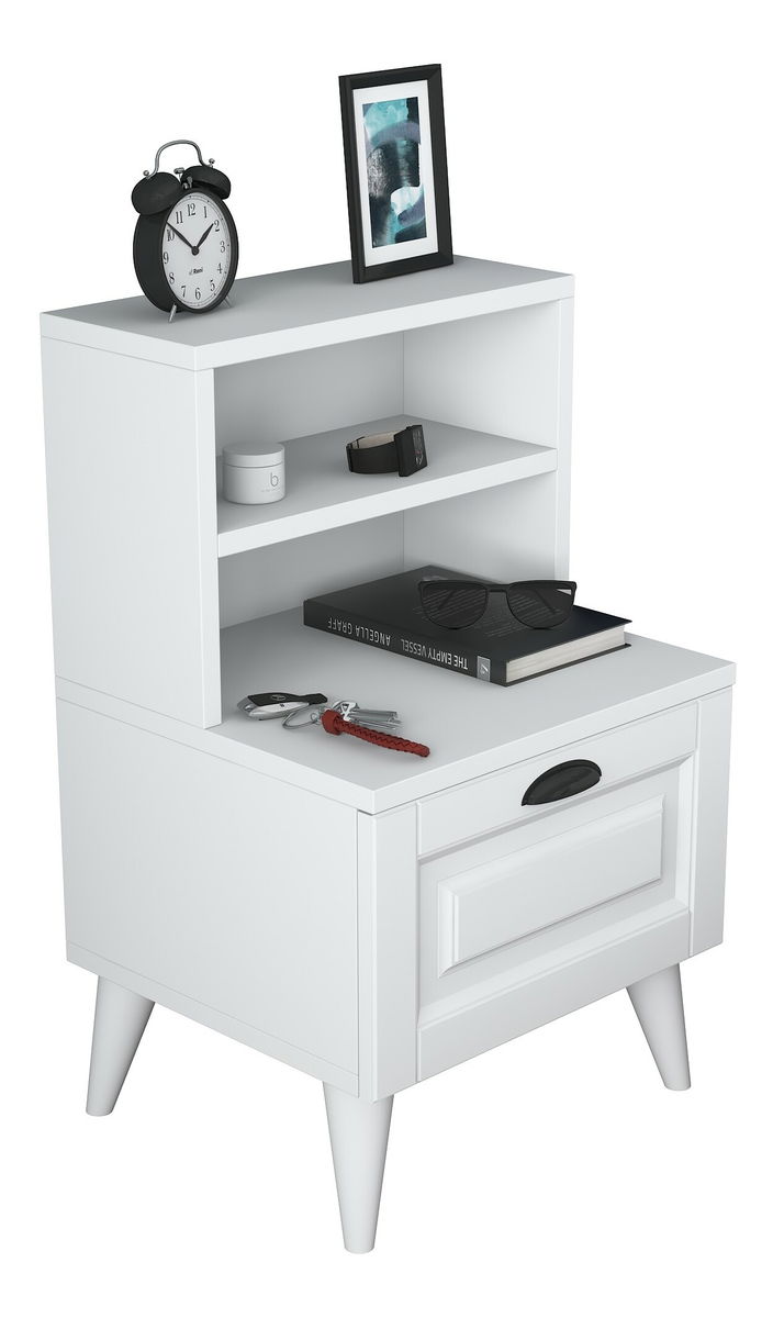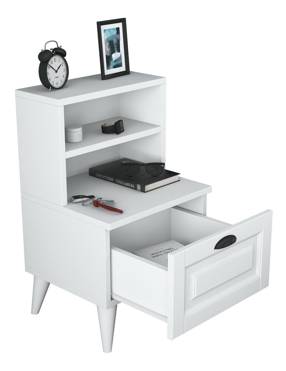 ZobrazitNoční stolek - Beddy (Bílá) o výšce 74 cm, šířce 45 cm a hloubce 40 cm je ideálním doplňkem pro vaši ložnici. Tento elegantní stolek v bílé barvě nabízí dostatek úložného prostoru, díky kterému máte vše potřebné v dosahu. Jeho praktický design zaručuje, že budete mít knihy, časopisy, mobilní telefony a jiné osobní věci vždy pořádně uspořádané. S Beddy nočním stolkem si můžete užít dokonalý komfort a příjemnou atmosféru ve vaší ložnici.