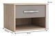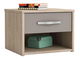Jednoduchý noční stolek je rozdělen na dvě části, přičemž horní část je uzavřena a spodní otevřená.